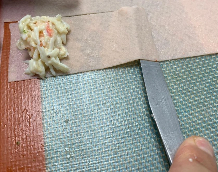 하지만 얇게 펴 바르는 능력과, 젤리류나 말린 칩을 바닥에서 조심스레 때어내는 능력이 정말 탁월하였다. 얇게 펴 바르는 능력이야 페인팅 나이프니 당연할 것이다. 그렇게 사용하라고 만든 기물이니까 말이다. 내가 놀랐던 포인트는 섬세한 젤리류를 바닥에서 때어낼 때였다. 일반적으로 아무리 실리콘 패드에서 조심스레 작업을 하여도 저런 식자재는 때어내는 과정에서 자주 부서진다. 그런데 얇고 탄성 있는 날이 바닥에 딱 붙어서 섬세한 재료들을 부서짐 없이 깔끔하게 때 내고 있는 것 아닌가.