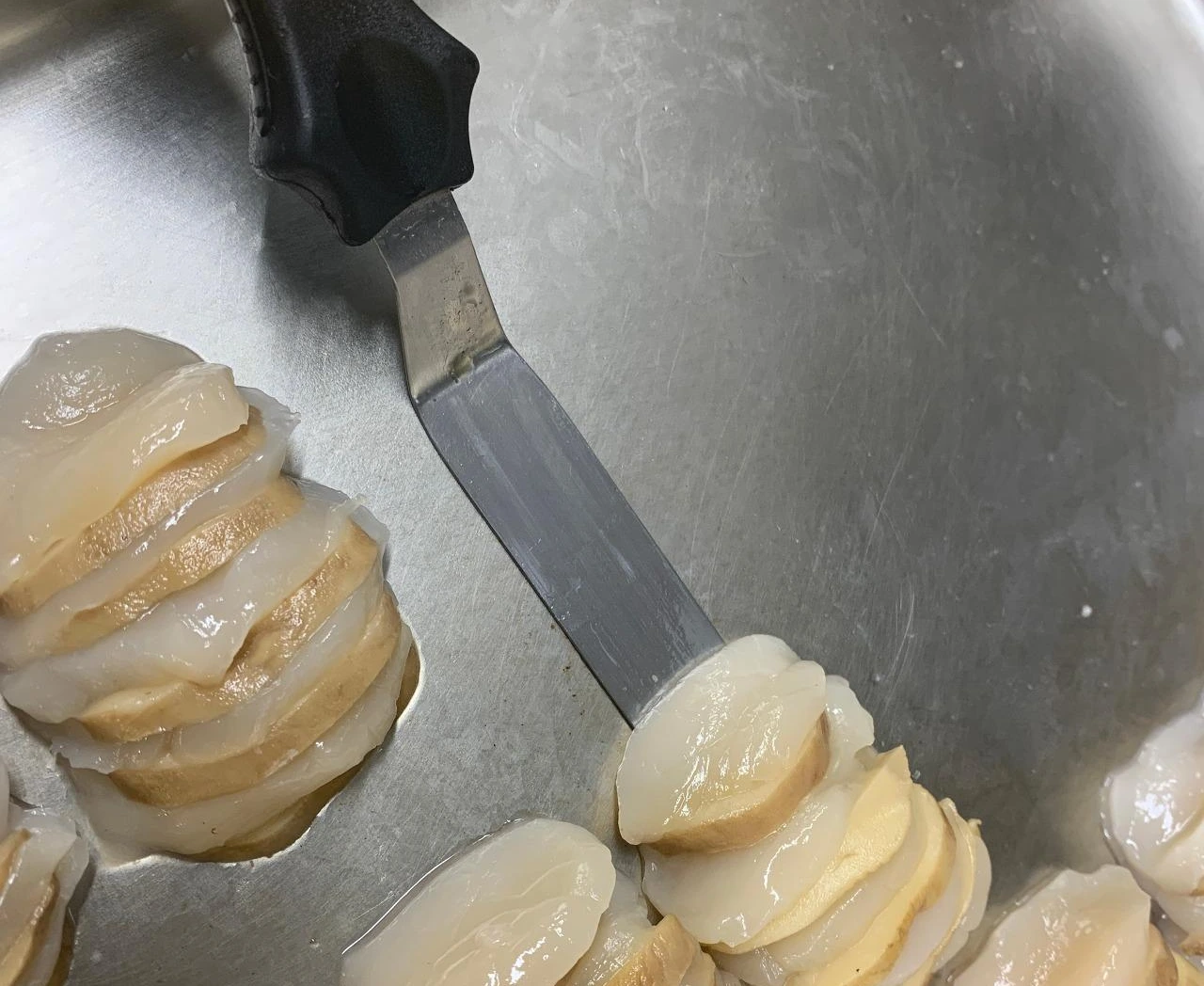 페인팅 나이프와 스페츌라의 결정적인 차이는 강재의 얇기에서 오는 부드러움과 탄성이었다. 강재가 얇기에 식재료를 들어 올려 옮기기에는 적당한 느낌은 아니었다. 가능은 하지만 자칫 잘못하면 식재료의 무게를 못 버티고 휘청 거릴 수가 있기 때문이다.