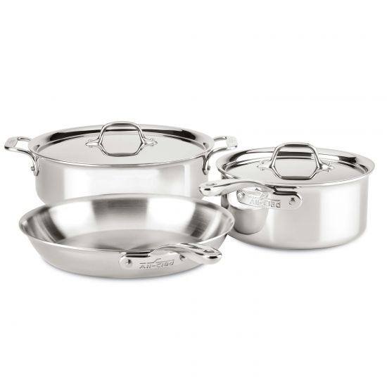 (출처: all clad 홈페이지) 대부분의 쿡웨어 세트에는 프라이팬용 뚜껑이 구성되어 있지 않다.