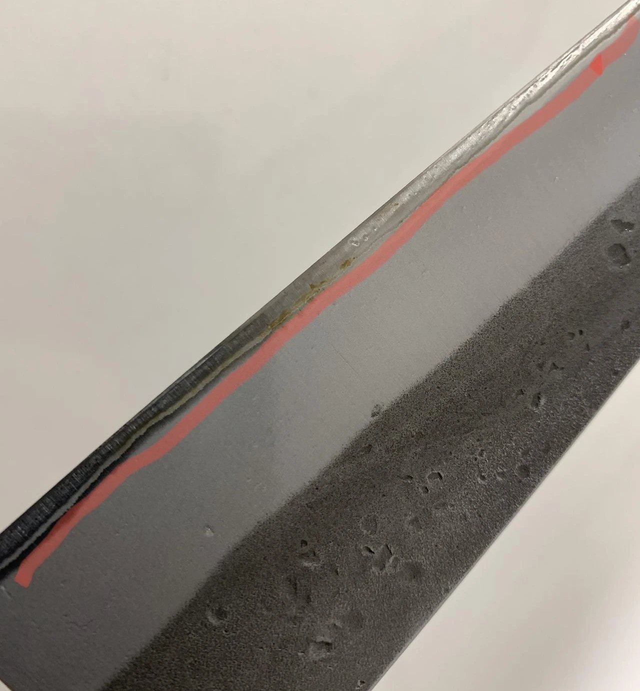 이테츠 가라스키는 중심 칼날 부분은 청강(탄소강)이라 녹이 잘 나지만, 옆에 감싸는 금속은 스테인레스로 만들어 녹이 생성되는 범위가 매우 좁다. 그래서 관리가 편하다. 실사용으로 양파, 당근, 딸기 등을 썰고 간단히 기름만 발라 2주 정도 사용해봤는데 녹이 슬지 않는다. 패티나라고 하는 얼룩 정도는 올라오는데 범위가 작아서 크게 신경이 쓰이지 않는다. 한 달 정도 사용을 해보니 녹이 올라오는데 역시 범위가 적다 보니 신경 쓰이지가 않는다.