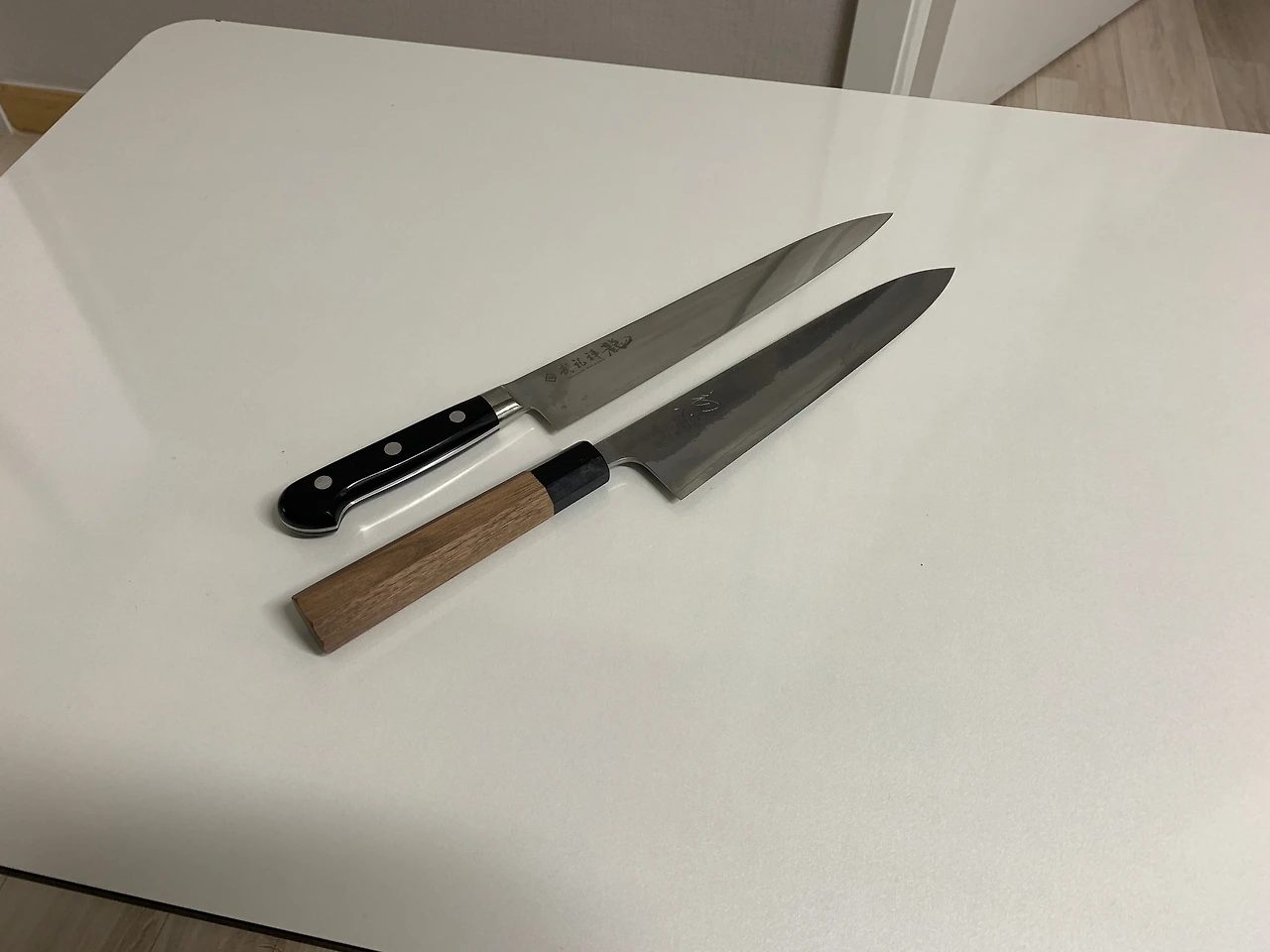 구매하기 전에 알아두어야 할 사실은 칼날의 길이가 생각보다 매우 길다는 점이다. 240mm를 구매하였는데 실제로 측정해보니 270mm와 거의 비슷한 사이즈를 자랑한다. 본인이 구매하려는 사이즈보다 한 단계 작은 사이즈를 구매해야 만족도가 커질 느낌이 들었다. 그리고 밸런스가 칼날 쪽이란 것은 내가 구입한 요시카네의 경우이다. 내가 구입한 요시카네의 핸들은 비교적 염가 버전이며, 핸들에 사용되는 나무에 따라 무게가 천차만별이니 밸런스가 중앙에 오는 요시카네도 분명 존재할 것이다.