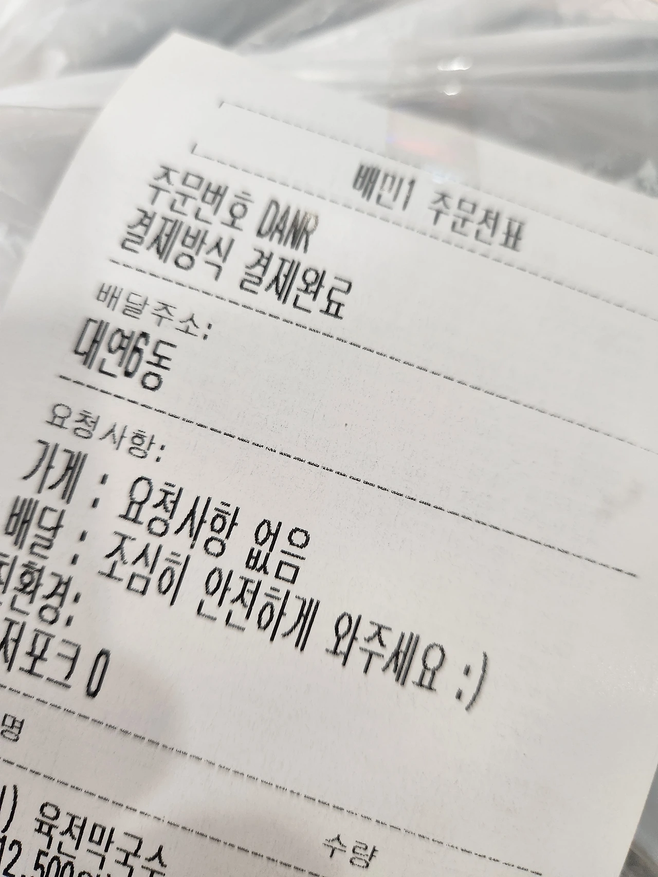 주요 내용으로는 '픽업 가야 할 음식점 정보, 배달 가야 할 고객 주소, 무엇보다 중요(?)한 배달료' 등이 있지만 빠트릴 수 없는 중요한 내용이 있다. 바로 ‘고객 요청사항’