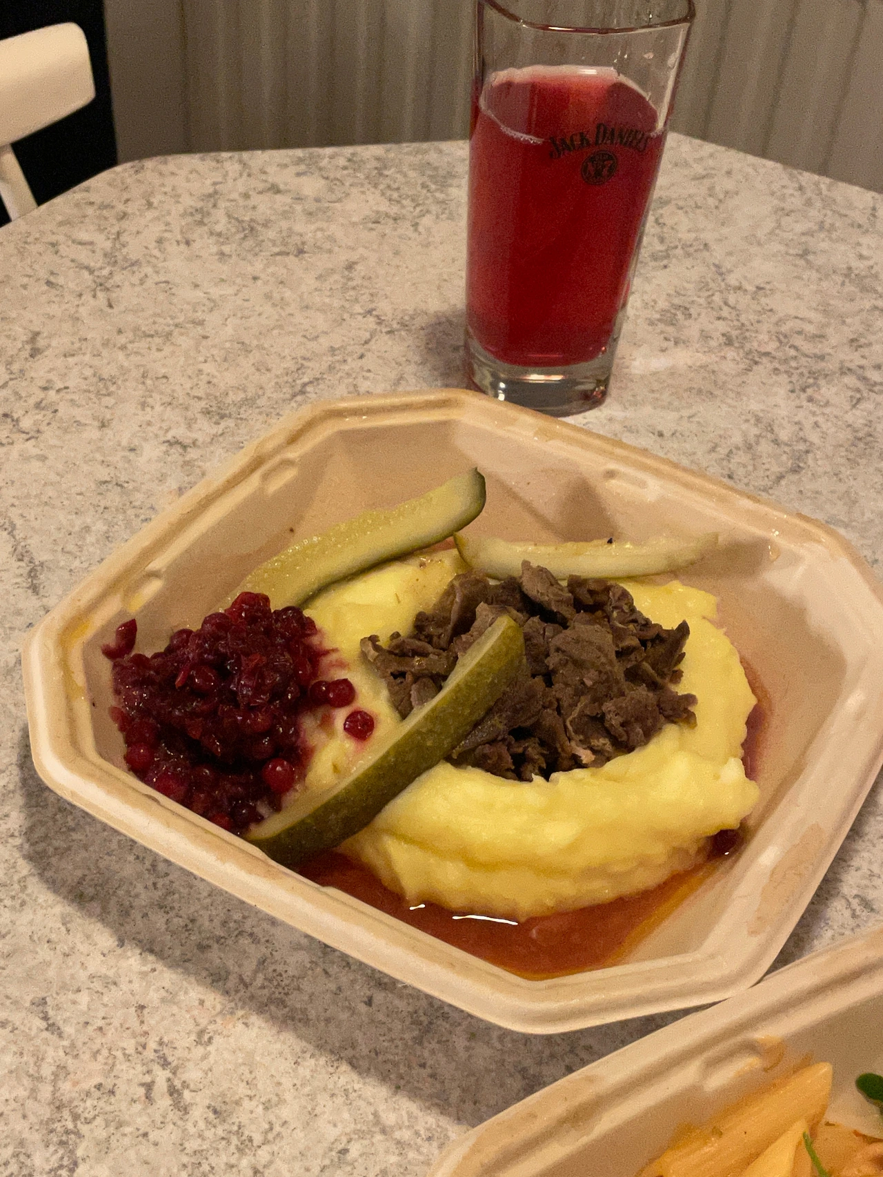 장시간 운전으로 굶주린 배를 안고 음식을 사 왔다. 순록과 함께 사는 라플란드 지방의 대표 음식 "poronkäristys(포론카리스티스, Sautèed reindeer)". 스모키 하게 구운 순록 고기에 으깬 감자와 링곤베리를 곁들여먹는다. 핀란드-스웨덴의 육고기 음식에는 링곤베리를 곁들이는 경우가 많다. 순대와 유사한 핀란드의 블랙 소시지(Musta Makara)도 링곤베리 잼을 함께 준다. 링곤베리의 새콤하고 씁쓸한 끝맛이 고기의 느끼함을 잡아준다.