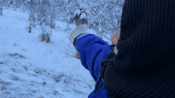 펜스를 열고 숲 안으로 들어가니 절경이 펼쳐졌다. 눈으로 뒤덮인 높은 나무들을 사이로 지나가니 영화를 보는 것만 같았다. 5분 정도 숲을 가로지르니 또 다른 펜스가 보였다. 여기를 열면 이제 순록이 모여 사는 곳이라고 했다. 목에 종을 메고 있는 순록이 보였다. 이름은 핑키라고 했다. 목에 달린 종으로 친구들을 부른다고. 그녀가 사료를 한통씩 었다. 달리는 스노모빌에서 사료를 바닥으로 뿌리며 순록들을 유인하면 된다고 했다.