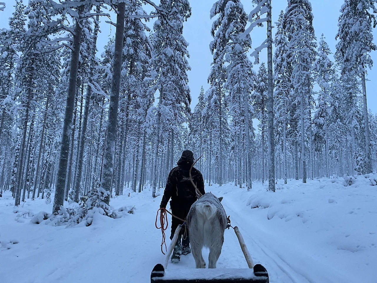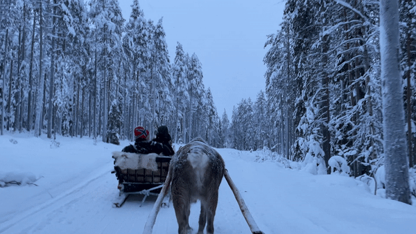 점심을 먹으며 이런저런 이야기들을 했다. 그녀가 어떻게 순록 농장을 운영하게 되었는지, 우리는 어떻게 만나고 연애를 시작했는지, 투어를 온 다른 사람들은 어떤 사연이 있었는지 등등. 오랜만에 피우는 타인과의 이야기 꽃에 시간 가는 줄 모르고 있던 찰나, 썰매를 탈 시간이 왔다. 두 마리의 순록이 우리를 기다려주고 있었다.