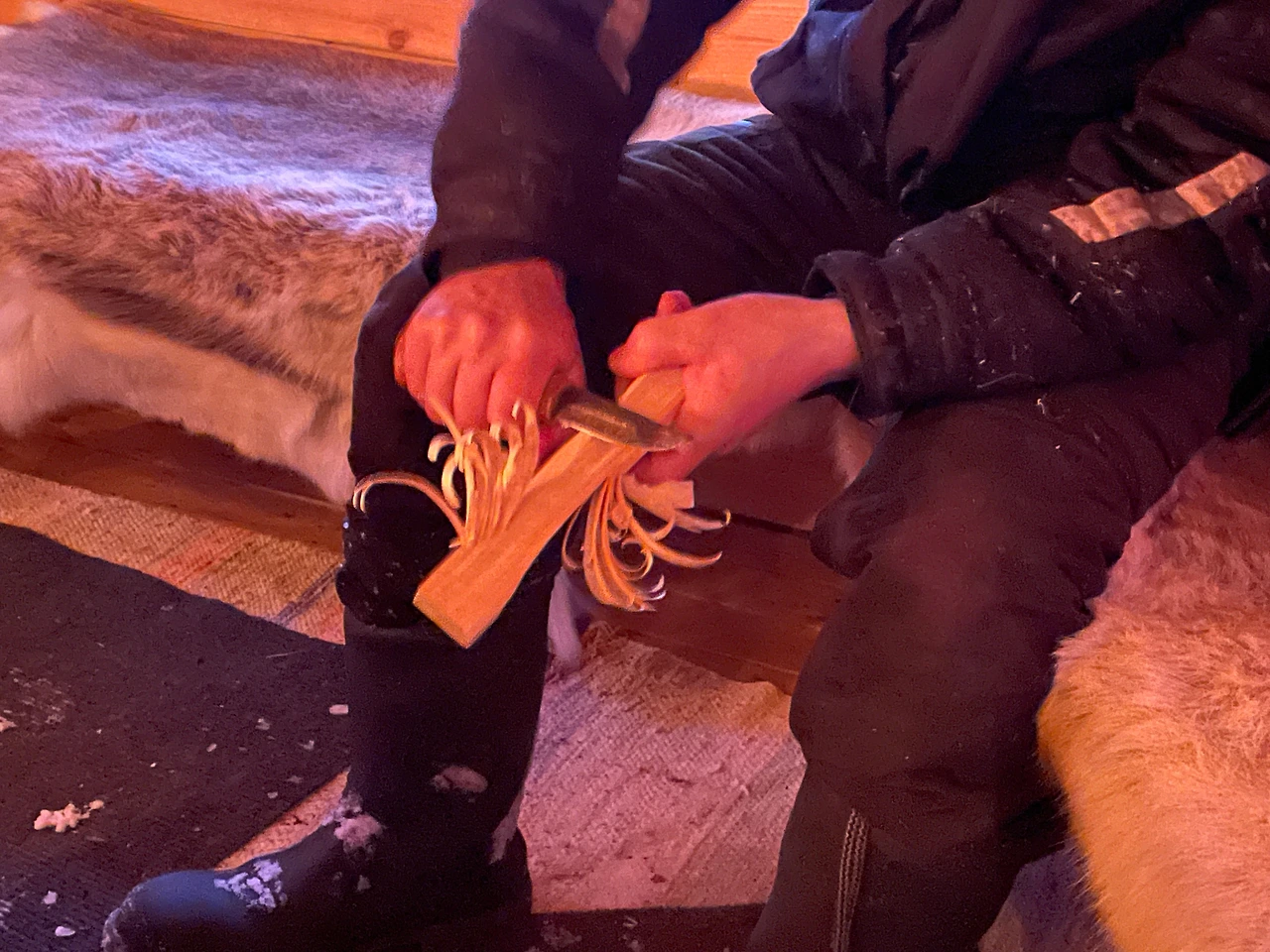 이때, 썰매 마스터가 갑자기 성냥 없이도 불을 피울 수 있는 방법을 알려주었다. 불이 잘 엉겨 붙을 수 있도록 가느다란 칩을 만들어두고, 잘 마른나무껍질 위에 자석 두 개를 긁어 불씨를 만든 후 나무칩에 불을 옮겨 붙이는 방식이었다. 이 트레이닝은 성공할 때까지 계속되었는데, 나는 실패했고 욘은 성공했다. 마스터가 불을 피운 사람은 내년부터는 일을 하러 와도 된다고 했다. 그렇게 욘에게 쥐어진 이직 목걸이.