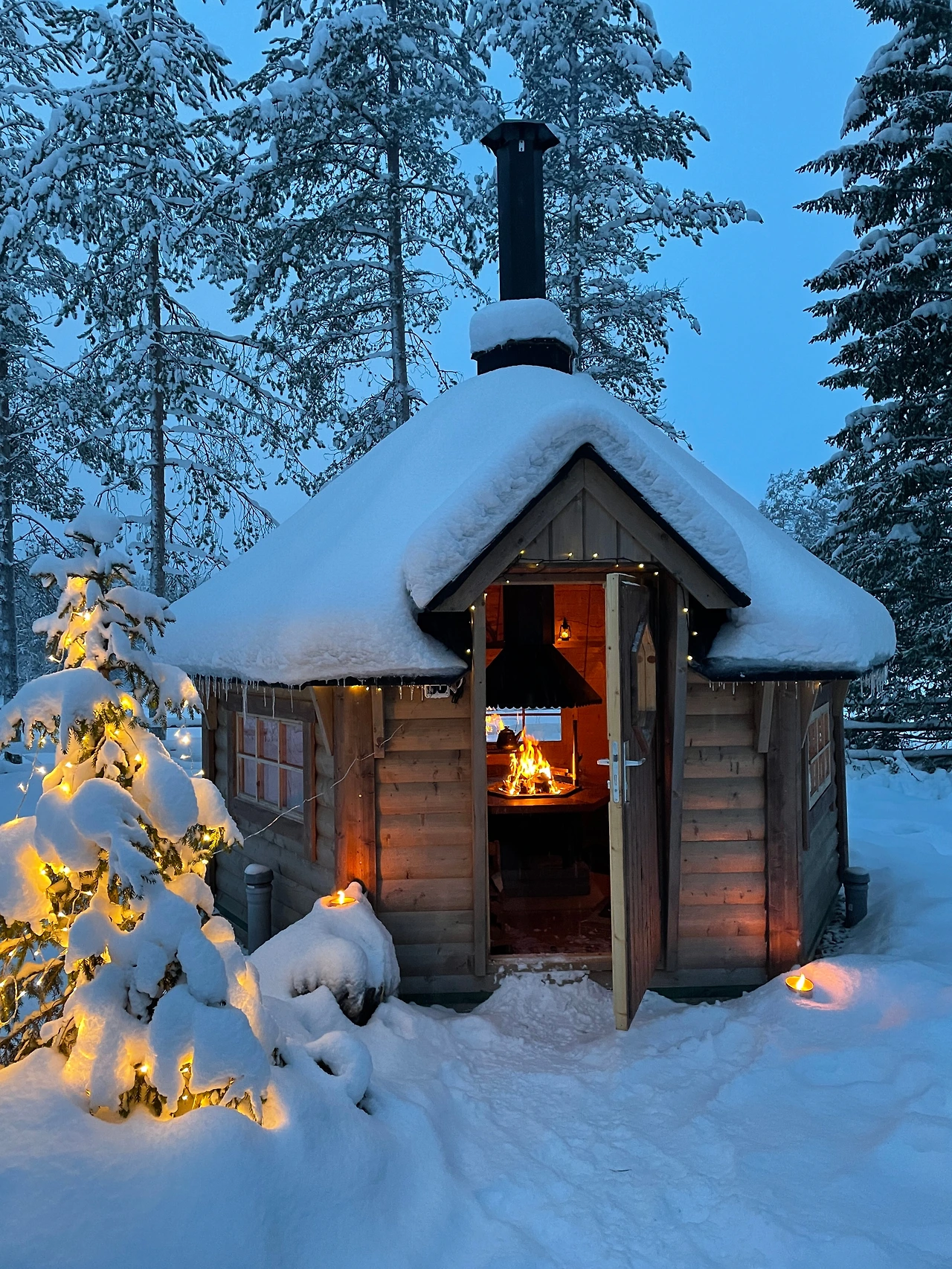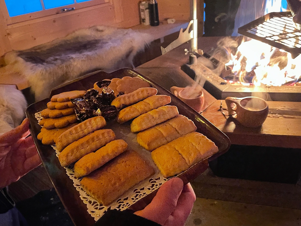 순록 썰매를 타고나니 농장주는 작은 바비큐 장소로 우리를 불렀다. 커피와 핫초코, 쿠키 등이 준비되어 있었다. 또다시 이야기 꽃을 피우는 시간이 주어졌다. 순록 썰매를 끌어주던 마스터와 농장주의 남편분도 합류했다. 다시 시작된 도란도란한 이야기들.