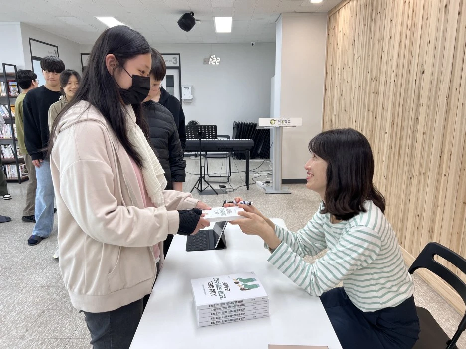 점심시간에는 사회선생님이 '책 출간기념 작가 사인회'를 급 열었고, 나는 요즘 가장 핫한 작가로 부상하여 아이들에게 책을 주고 사인을 해 주는데 이러다 스타병 걸리겠구나, 혼자 웃고 또 웃었다.