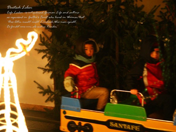 앞자리에 앉으라고 했더니 맨 끝이 더 낫단다. 거만한 포즈로 기차에 오른다. 웃지도 않고, 소리도 내지 않고 묵묵히 기차를 탄다. 해맑게 웃는 독일 아이들과 표정 없는 우리 아기의 조합. 나와 오빠만 연신 "좋아? 좋아?" 되묻고, 아기는 그저 당연한 것을 즐긴다는 표정. 어릴 적 동네에 장난감 말이 달려있는 트럭이 오면 신이나서 달려가 50원을 주고 탔었다. 앞 뒤로 흔들리는 말을 타면서 정말 하늘을 달리고, 초원을 가로지르는 듯한 기분이었는데, 아이도 기차를 타며 다른 세상에 온 듯 한 기분일걸까. 엄마 아빠도 보이지 않는 것처럼.