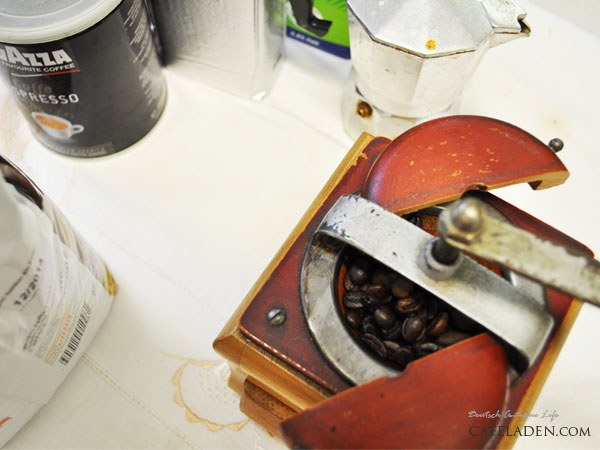 (저는 독일 Tegut 마켓에서 구입한 커피콩과 자센하우스 커피밀, 그리고 이태리에서 싸게 구입한 밀크포트를 사용했습니다.)