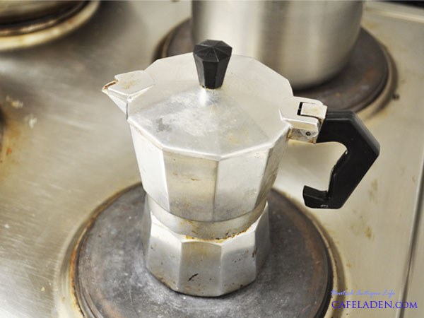 4. 물과 커피 가루를 담은 모카포트를 조립한 후,