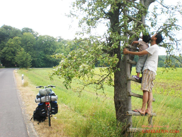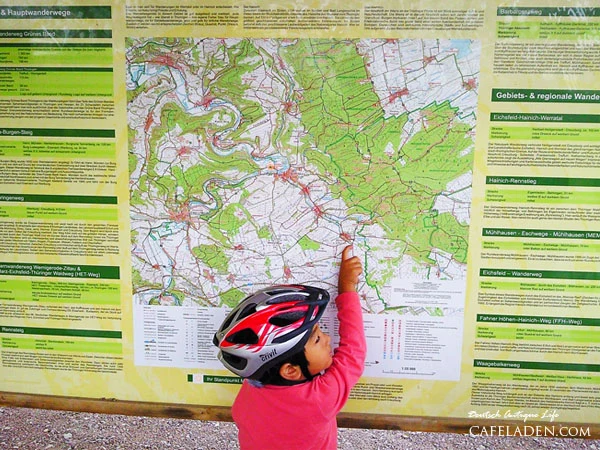 기차역은 산 너머 뮬하우젠 도시에 있고, 그래서 산을 넘지 못하면 집에 가지 못한다. 가다가 해가 지면 답이 없기에 작정하고 자전거를 타야하는 상황이다. 날씨는 흐렸다 맑았다 하더니, 점심 시간이 되자 눈이 부실만큼 화창해졌다. 잔잔한 오르막들을 여러 개 넘는 동안 30도가 웃도는 날씨에 땀으로 다 젖고, 땡볕에 얼굴이 더 까매졌다. 아이는 까만콩 별명처럼 더 동글동글한 모습이 되었다.