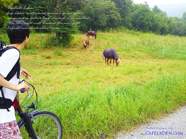 한 시간 정도 올랐을까. 튜링겐 주의 국립공원 하이니히 산의 꼭대기쯤 되나보다. 내리막길이 시작된다. 시원시원하게 내리뻗은 길을 달린다. 여행의 마지막을 장식할만큼 달콤한 산 공기가 퍼지고 아이가 좋아하는 양도 만나고, 말도 만난다.