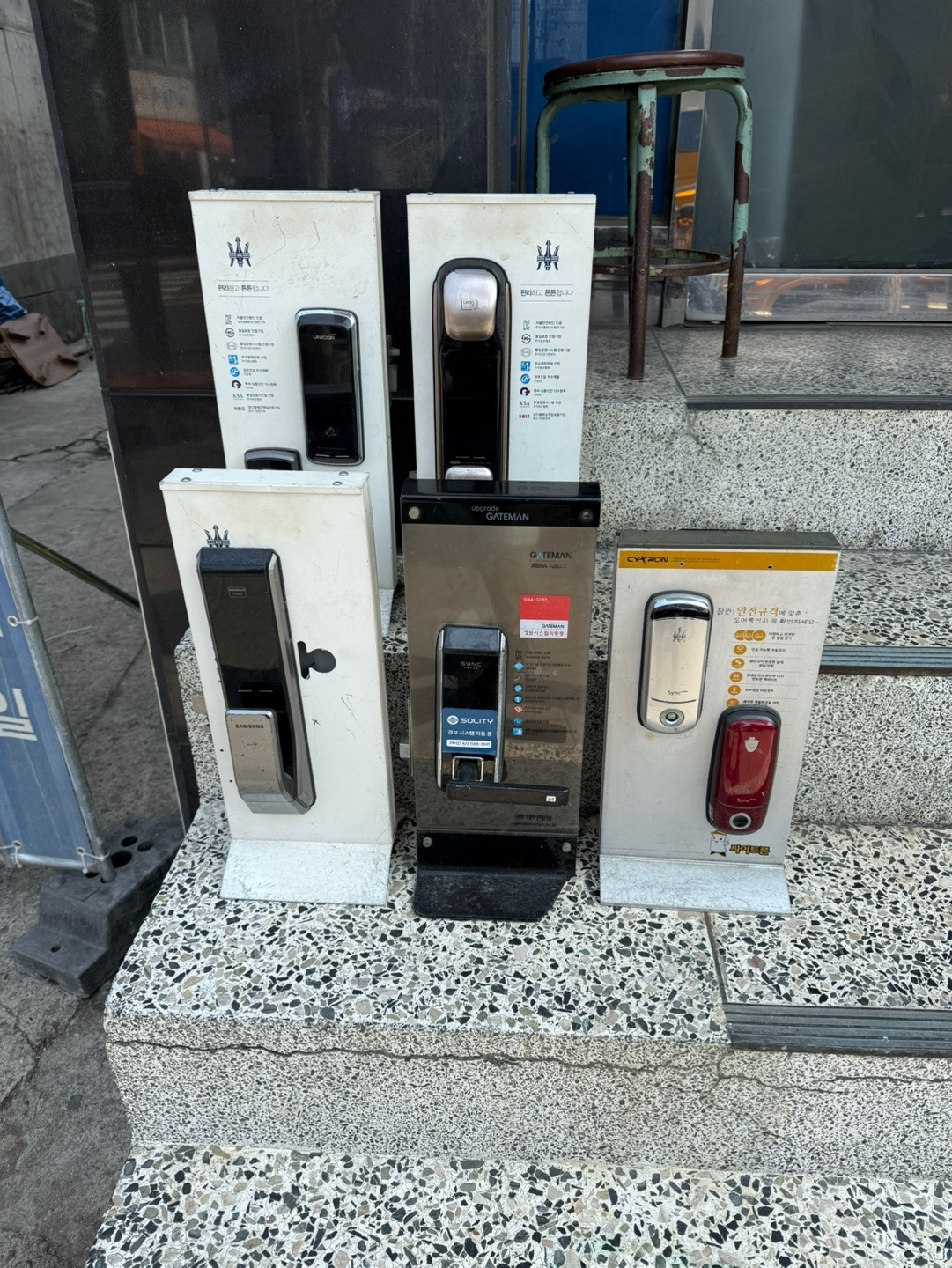 두 번째 잉어빵이 사라질 즈음, 코너를 돌자 도어록 몇 개가 건물 앞 계단에 놓여 있다.