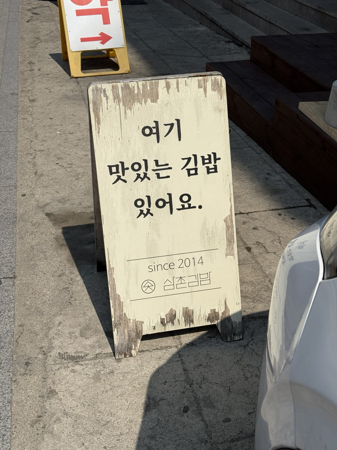 조금 걷다 보니 작은 김밥집 앞이다. 입구 옆 간판에 이렇게 쓰여 있었다.