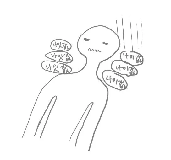 나이가 들면 어깨가 굽어지게 되는데 이것은 나잇값이라고 불리는 세상의 기대들이 어깨에 하나씩 올라가기 때문일 것이다.