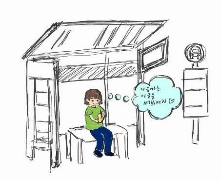 그림에서라도 마스크를 벋고 버스를 기다립니다.