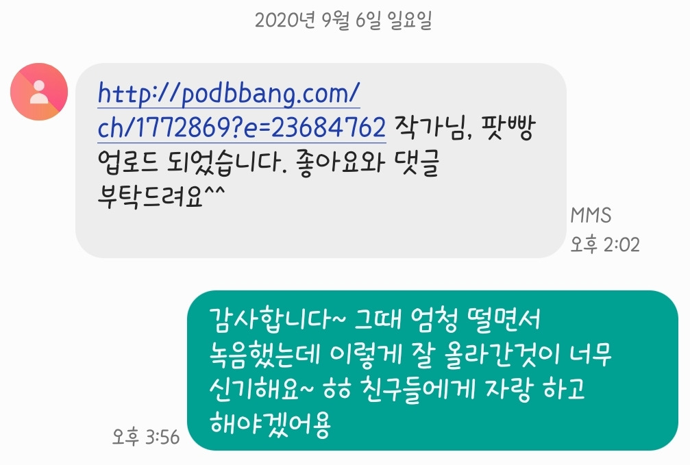 문자를 확인하고, 신이 나서 팟빵을 켜고 확인을 했다. 부끄럽지만, 내가 내 글에 하트도 누르고 댓글도 달았다.