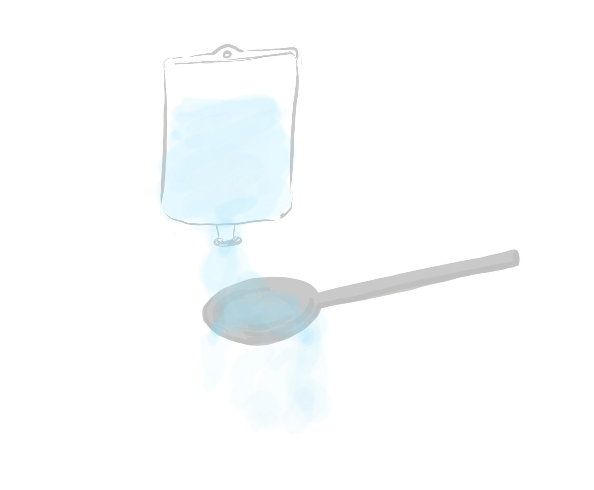 진통에 떨고 있는 링거액
