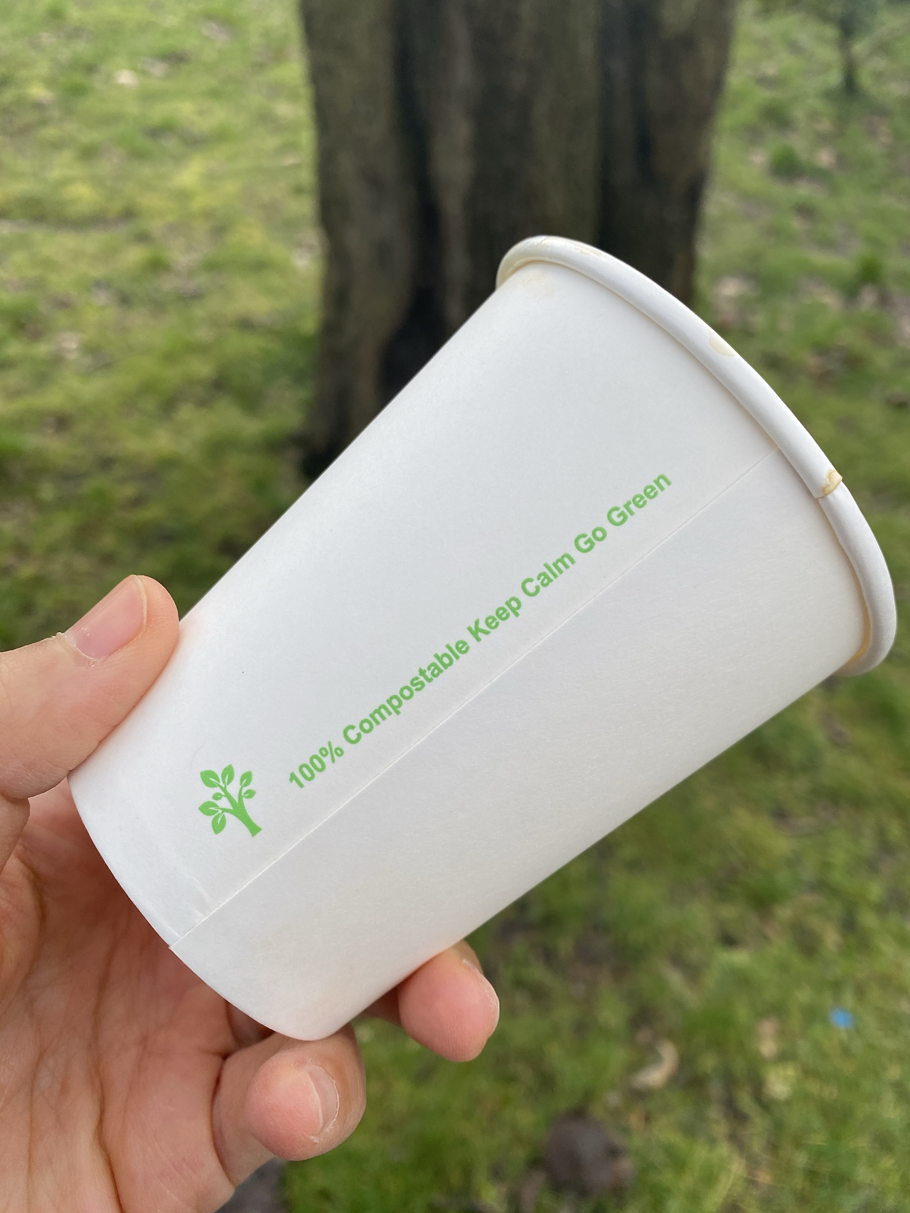 홀로 감상에 젖어 봄을 만끽하며 호로록호로록 커피를 다 마시고 나니 이번엔 종이컵에 100% 퇴비화할 수 있다는 친환경 표시가 눈에 들어왔다.