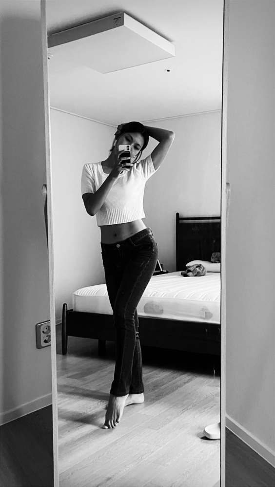 그렇게 두 가지 서로 다른 디자인의 청바지를 입어봤다. 역시나, 골반에 걸쳐지는 로우 라이즈 청바지를 입으니 너무 어색하고 내 엉덩이만 보이는 것 같아 당장 벗고 싶었다.