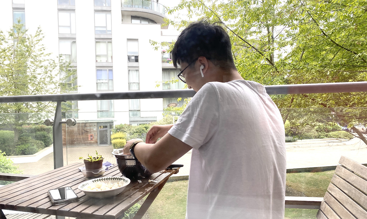 남편은 발코니에 앉아 귀에 아이팟을 꽂고 뭐가 그리 재밌는지 낄낄대고 있었다.