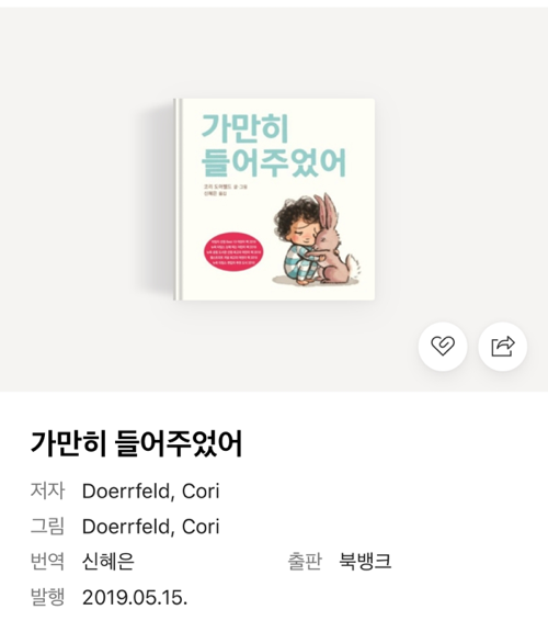 코리 도어펠드 작가의 <가만히 들어주었어> 그림책에서 주인공이 열심히 쌓아올린 블록을 지나가던 새가 다 무너뜨리고 가버립니다. 주인공은 무지 화가나고 속상했지요. 여러 동물친구들이 와서 각자의 방법대로 아이를 위로해줍니다. 조언도 해줘요. 하지만 모두 다 마음에 와 닿지는 않았습니다. 그러다 토끼가 와서 가만히 아이의 옆에 있어줍니다. 그 온기를 느끼며 아이는 회복을 하게 되고, 기꺼이 다시 블록을 쌓는 힘을 내게 됩니다.