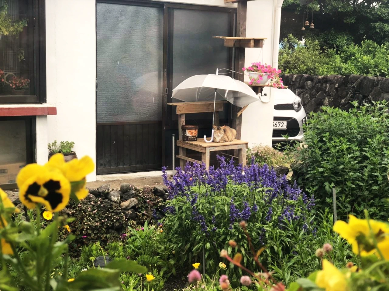 최근에 다녀온 제주도 여행에서는 온종일 내리던 비 덕에 내가 고른 숙소가 진가를 발휘하는 일이 있었다. 애초에 힐링이 목적인 여행이었기에 걸어서 바닷가까지 3분 거리에 있는 고즈넉한 동네에 자리한 숙소를 선택했다. 숙소의 앞뜰은 호스트 님이 가꾸신 귀여운 꽃밭이 있고 뒤뜰은 한라봉 재배지였는데 모닝커피 한 잔을 내려 비가 꽃과 나무를 적시는 풍경을 창 너머로 보고 있자니 힐링도 이런 힐링이 없었다. 게다가 숙소에 구비된 최고의 음향시설과 서재는 비가 오는 것이 오히려 감사할 정도였다. 여행을 함께 간 일행도 나의 숙소 고르는 안목에 다시 한번 고개를 끄덕였다.