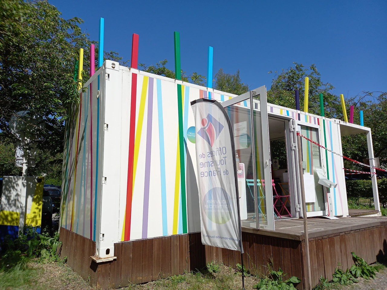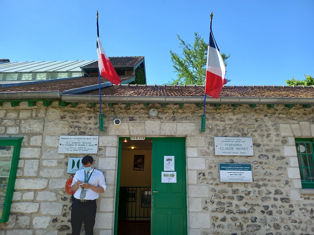 모네의 집 입구(왼쪽)와 관광 안내소(오른쪽)a