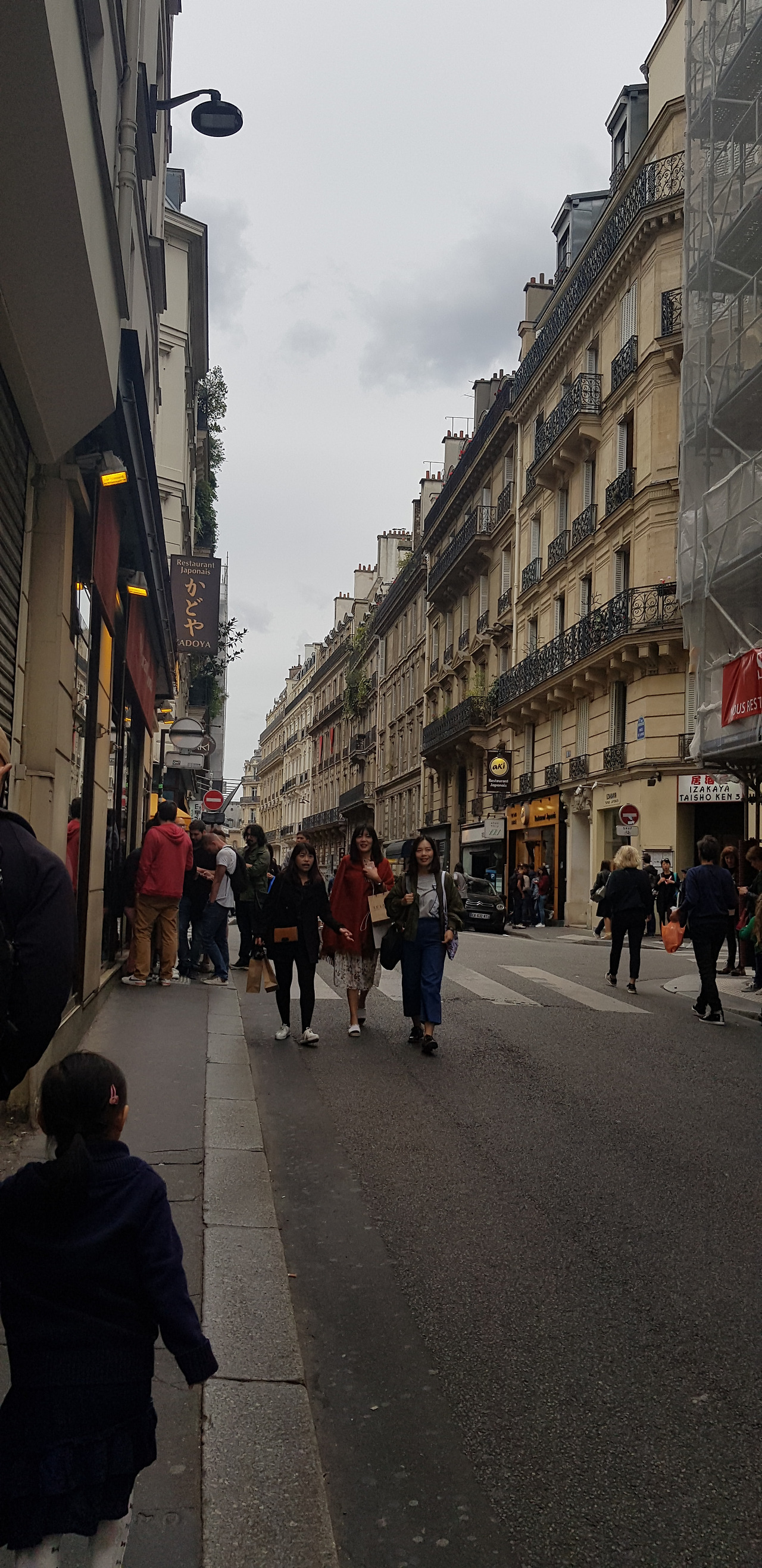 파리는 세계 1위 관광지답게 여전히 복잡했고 길거리에는 불어보다는 영어 독어 러시아어 중국어 등 외국어들이 더 많이 들려왔다. 한국 식품점에서 물건을 사기 위해 골목으로 들어갔다. 일본인 거리로 일본 레스토랑들이 모여 있으며 사이 사이에 한국 레스토랑들도 있었다.
