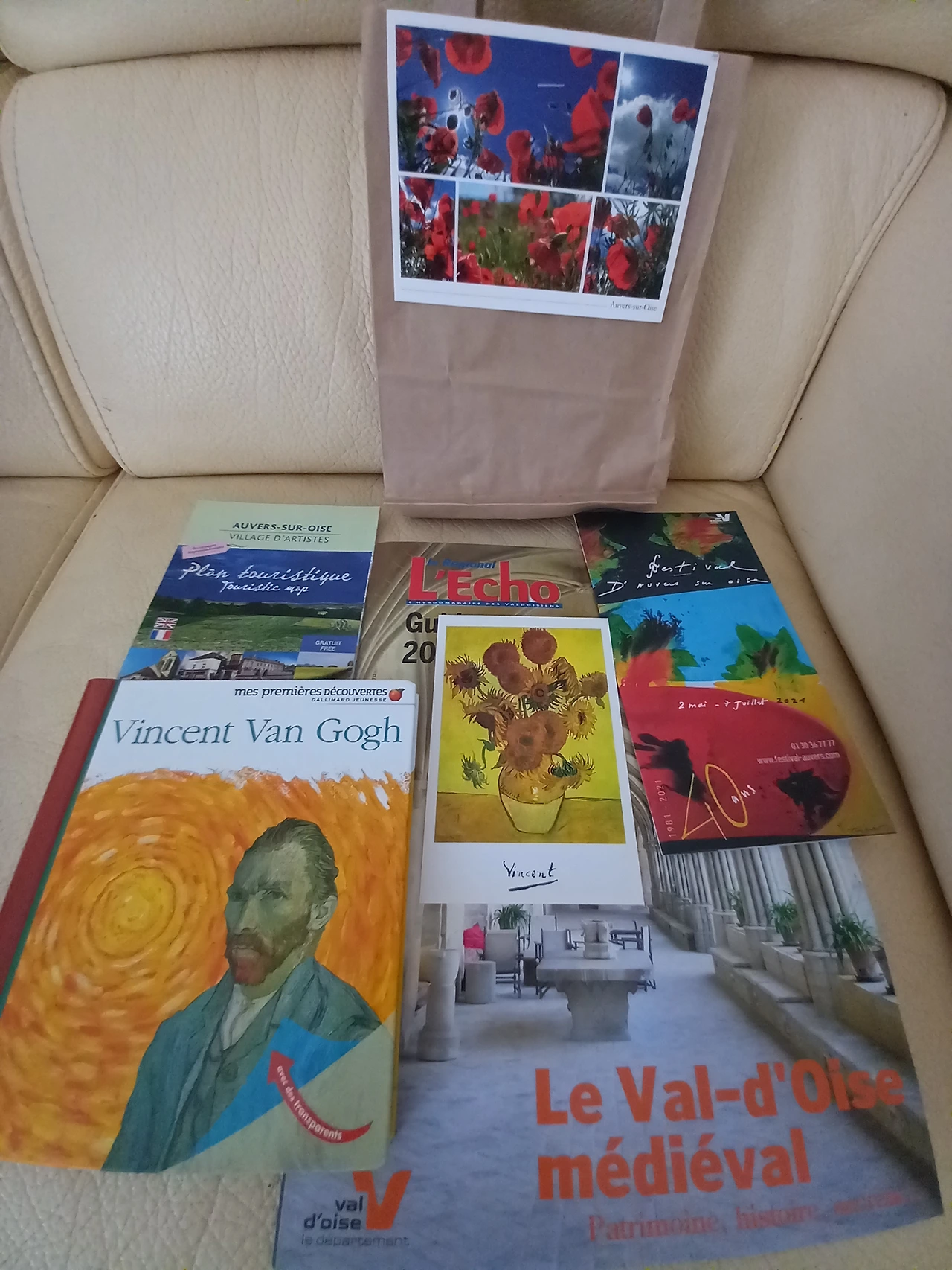 관광 안내소에서 산 반 고흐 동화책과 엽서. 지역 매거진