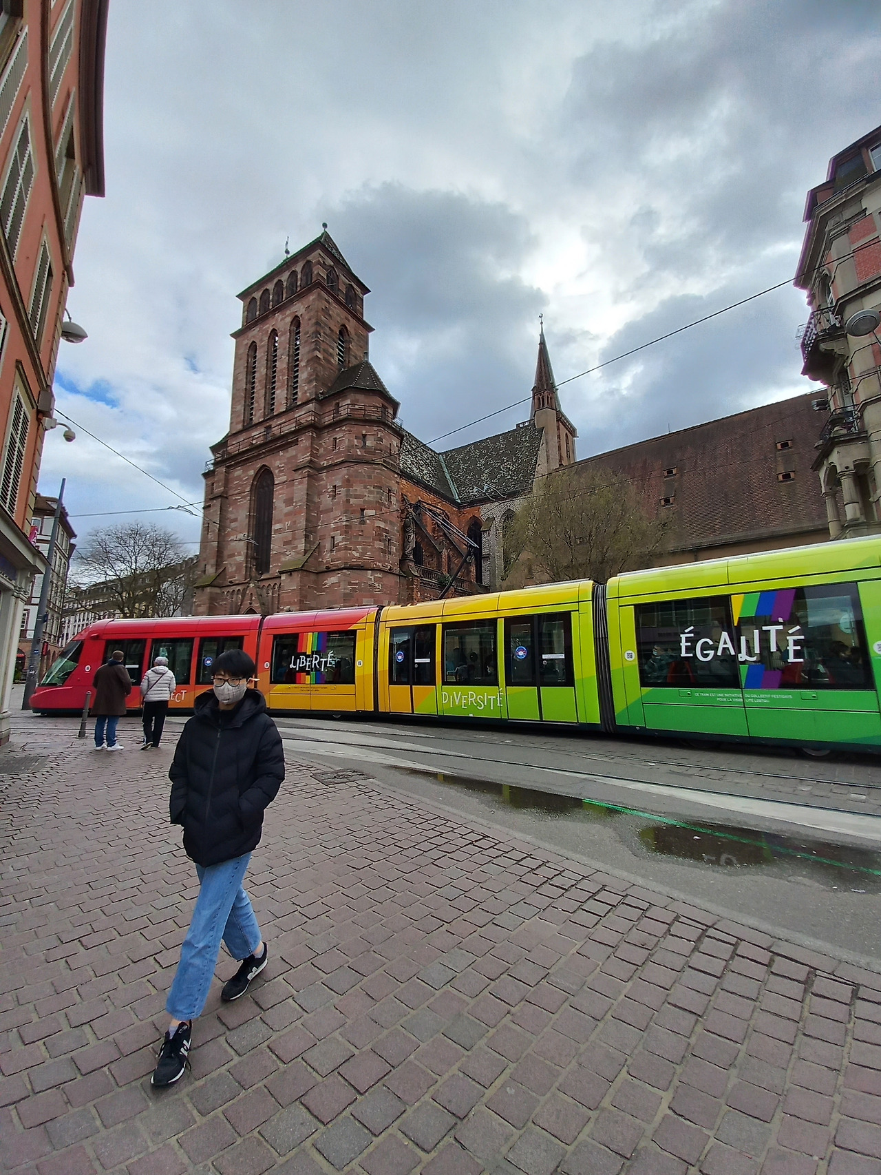 트램에 프랑스 혁명의 3대 이념 "자유(Liberté), 평등(Egalité), 박애(Fraternité)"가 씌여있다. 걷다보니 구시가지로 들어왔다