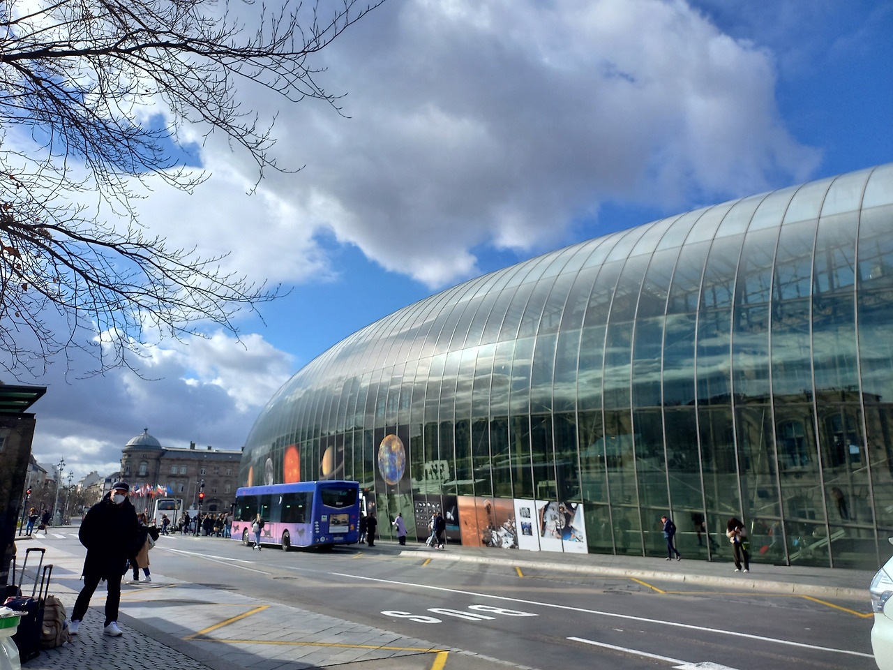 Strasbourg 스트라스부르 기차역. 유리 안으로 오래된 건물이 비친다.