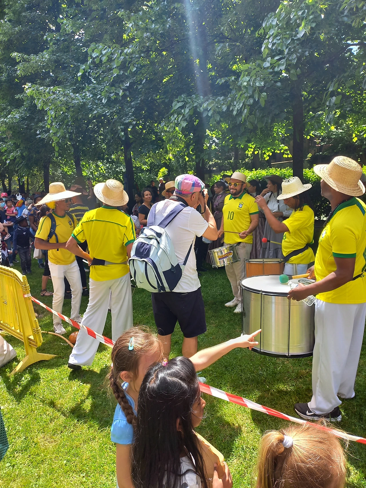 브라질 협회는 신나는 음악과 함께 쌈바 춤, 까뽀에이라 전통 무술 시범을 보였다.