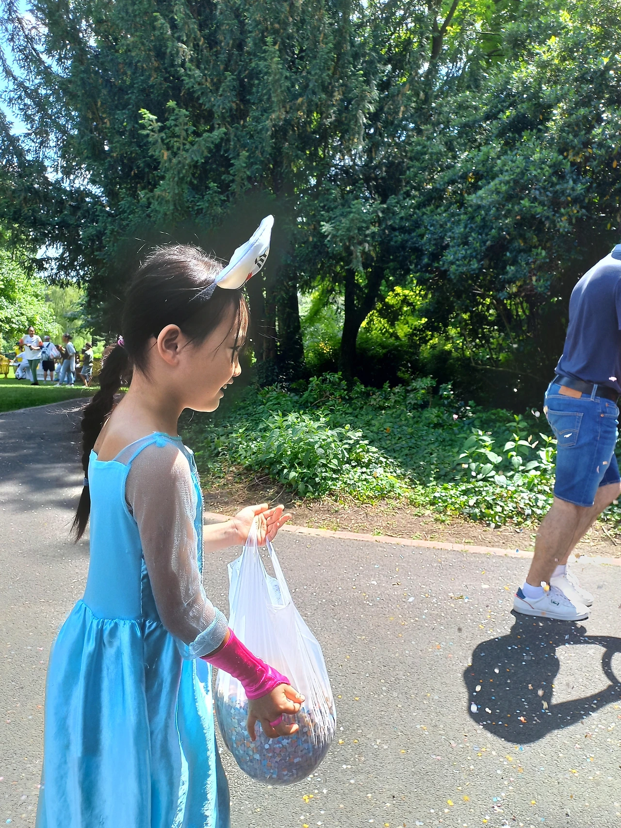 딸아이는 전날 저녁 혼자 색종이를 자르며 꽃가루를 준비했다. 스스로 준비해 갔는데 공원에서 1인 한 봉지씩 꽃가루를 나눠주었다. 비밀 봉지를 받고 딸아이는 눈이 휘둥그레졌다.