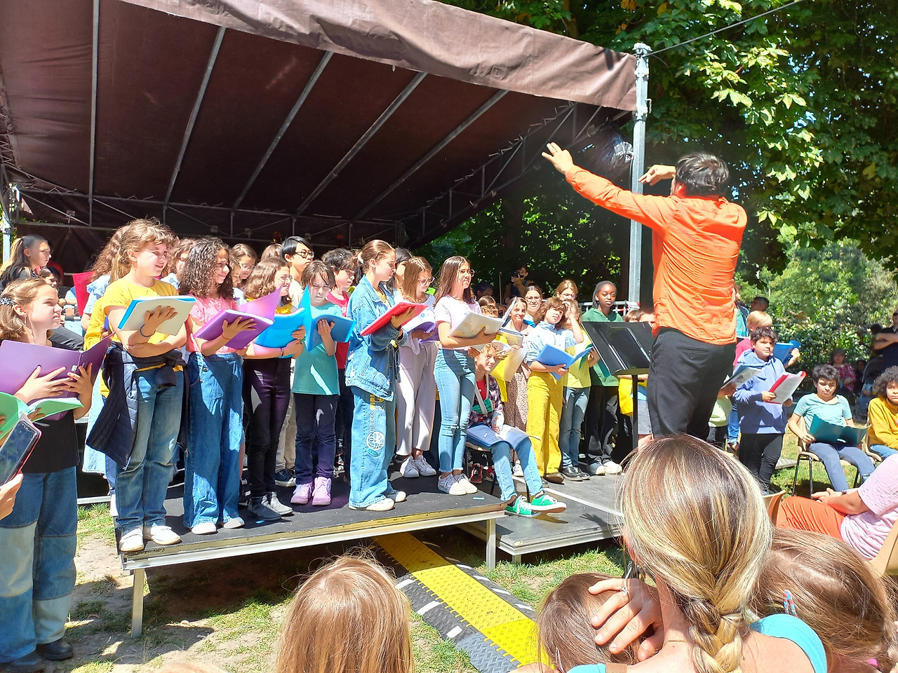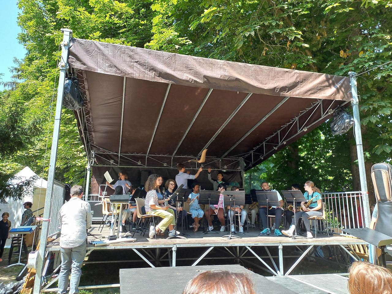 드디어 아들의 합창 시간이 돌아왔다. 동유럽 출신의 피아노 선생님(음악원)이 지휘를 맡았는데 공연 전 관객 중 우크라이나 학생들이 있는지 물었고 2명의 아이들이 합창에 함께 참여했다. 마지막 곡을 부를 때 한 여자 아이가 기절했다. 원래는 이날 비 소식이 있었으나 예상외로 햇볕이 강했다. 한 시간 이상 서서 대기하다 무대에 올랐는데 더위에 기절해 버렸다. 주변의 어른 한 명이 기절한 아이를 안고 바로 옆 의료 부스로 이동했고 아이들은 준비한 곡을 마무리했다. 다행히 아이는 바로 정신을 차려 의자에 앉아 있었다고 한다.