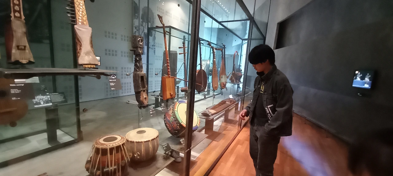 우리는 박물관 내 악기를 보기 위해 이동했다. 아프리카 아시아 유럽 전 세계 전통 악기들이 전시되어 있었다. 한국의 북을 보니 반가웠다.