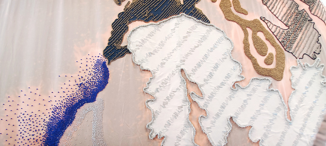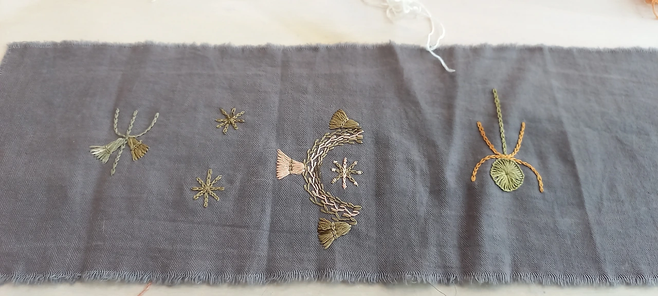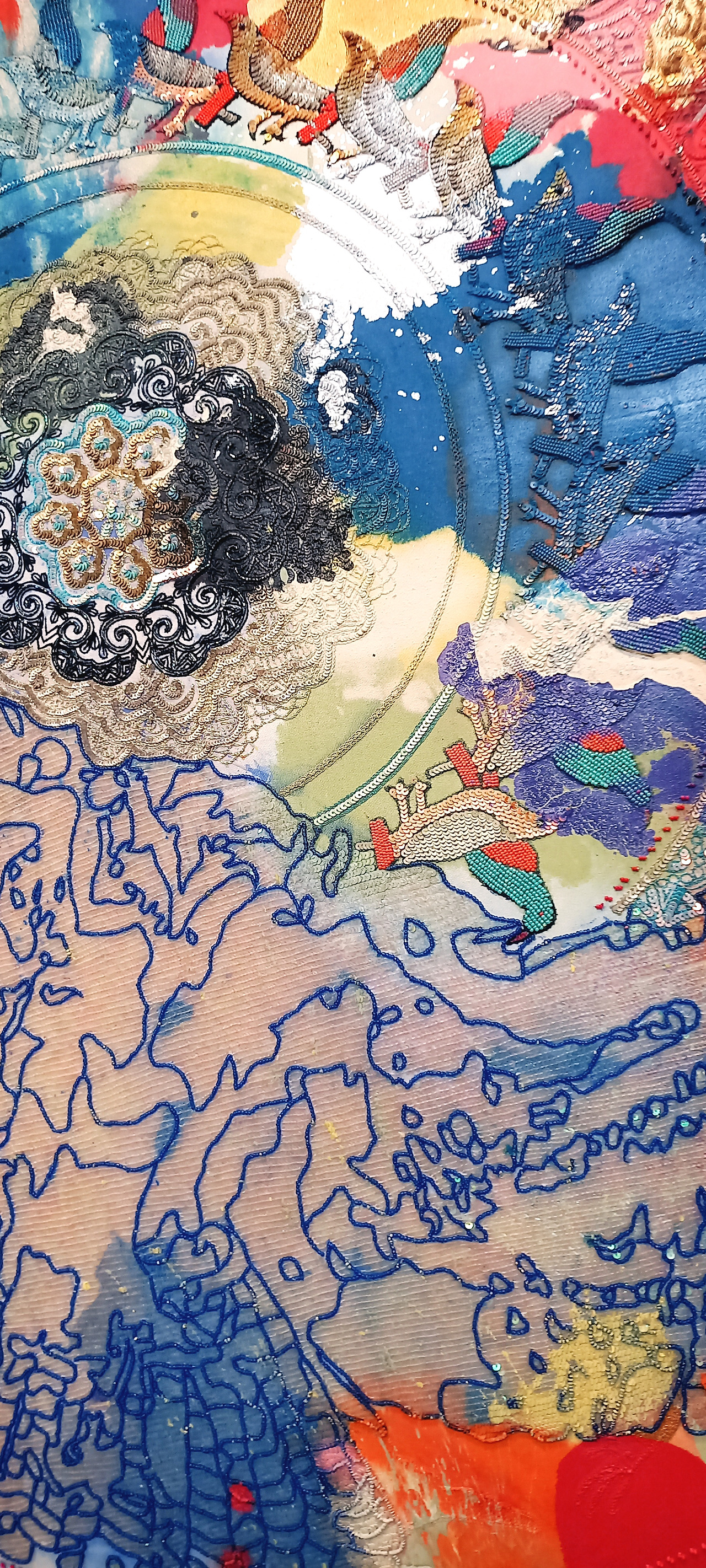 물감과 자수, 진주와 스팽글을 더해 입체적으로 표현했고 자수의 다양한 방법을 소개했다.