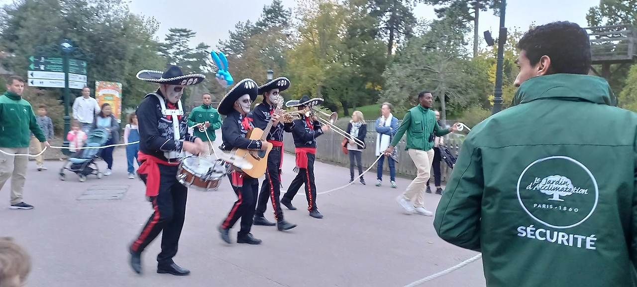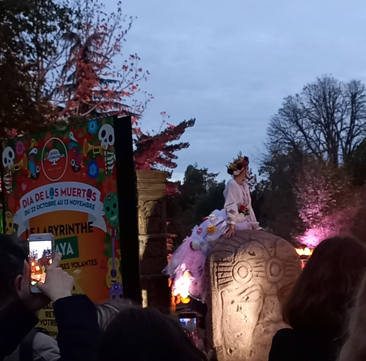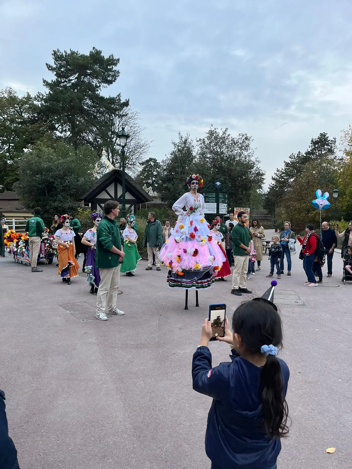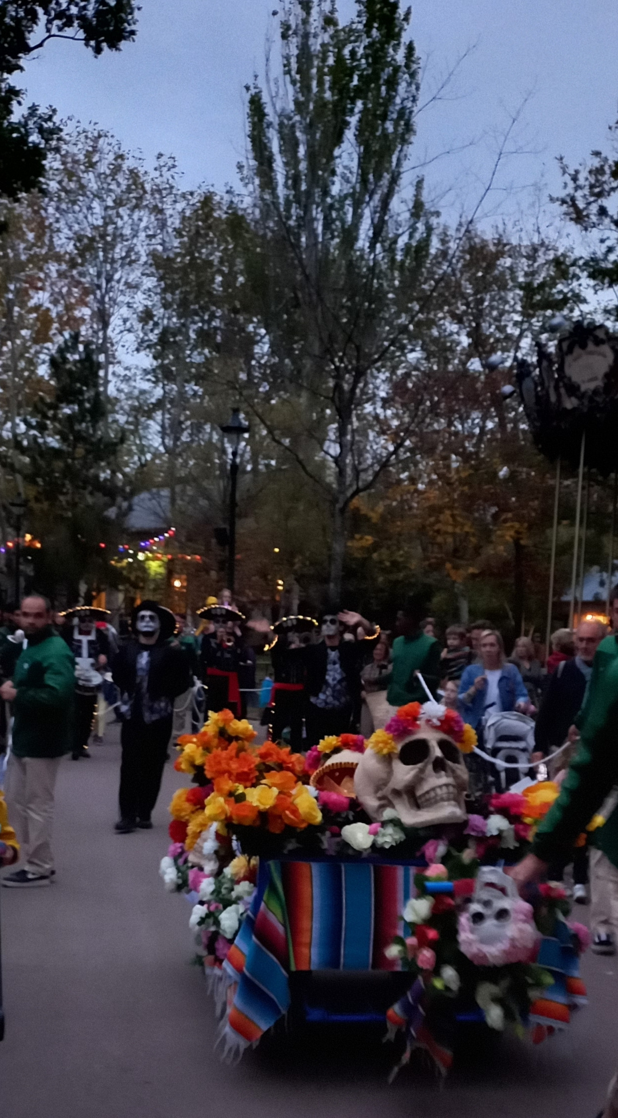 시간을 기다리며 놀이터에서 놀고 있는데 해골 공주가 나타났다. 알고 보니 퍼레이드 출발점이 이곳이었다.