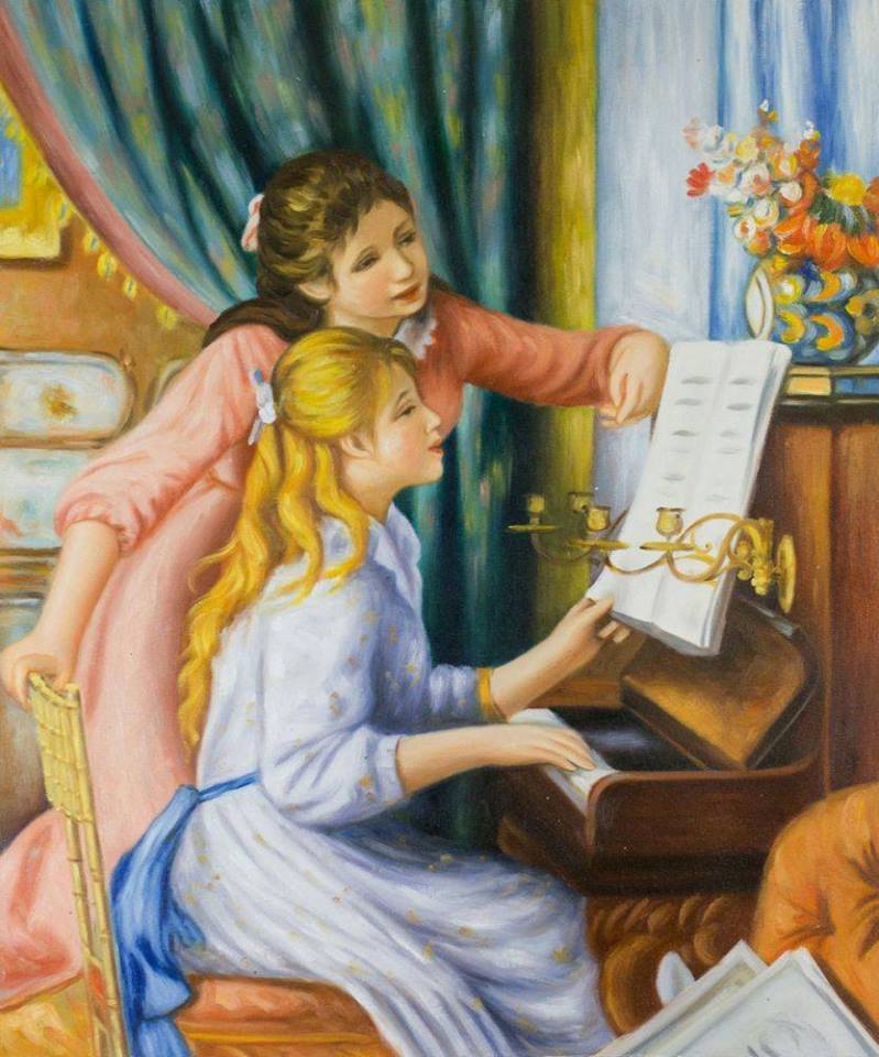 르느와르는 1891년 피아노 치는 소녀들을 제안받아 총 6개 버전의 작품을 그렸다고 알려졌습니다. 완성작은 오르세 미술관에 전시되어 있다고 합니다. 르느와르는 장기간 똑같은 그림을 그려 굉장히 예민했다고 하는데요 그림에서는 그의 감정을 찾아볼 수 없습니다. 그는 "내가 가장 사랑하는 것은 평온함이다" 라고 말했고 "가장 단순한 주제가 영원하다" 라는 말을 했다고 합니다.