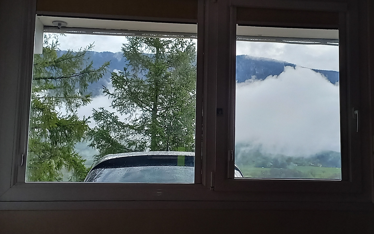 방 창문에서 비라본 풍경. 정원에서 2시간 썬텐했다.