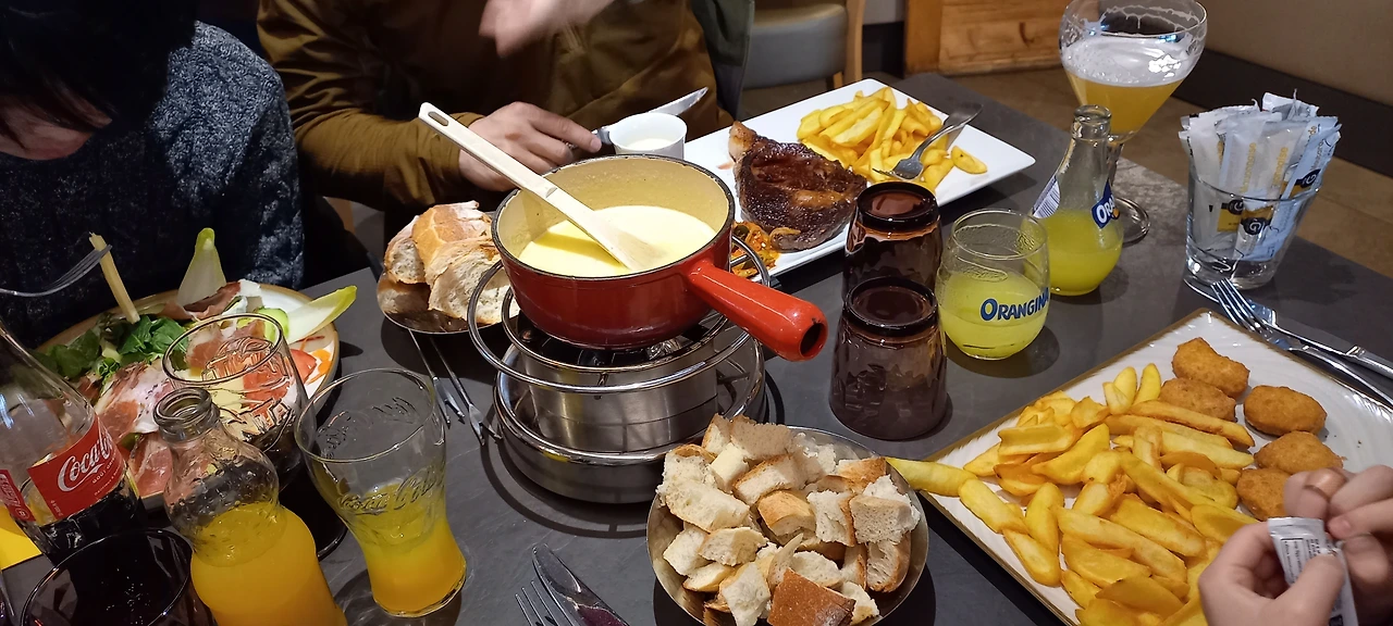 남편이 작년에 스키 타러 왔을 때 들렸던 레스토랑에 가서 퐁듀를 먹었다.