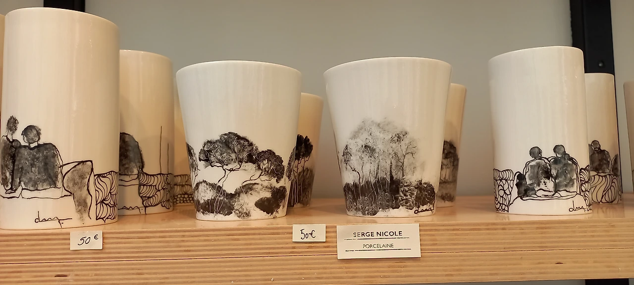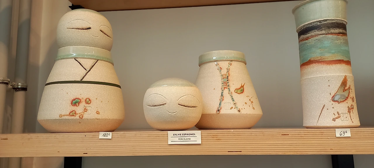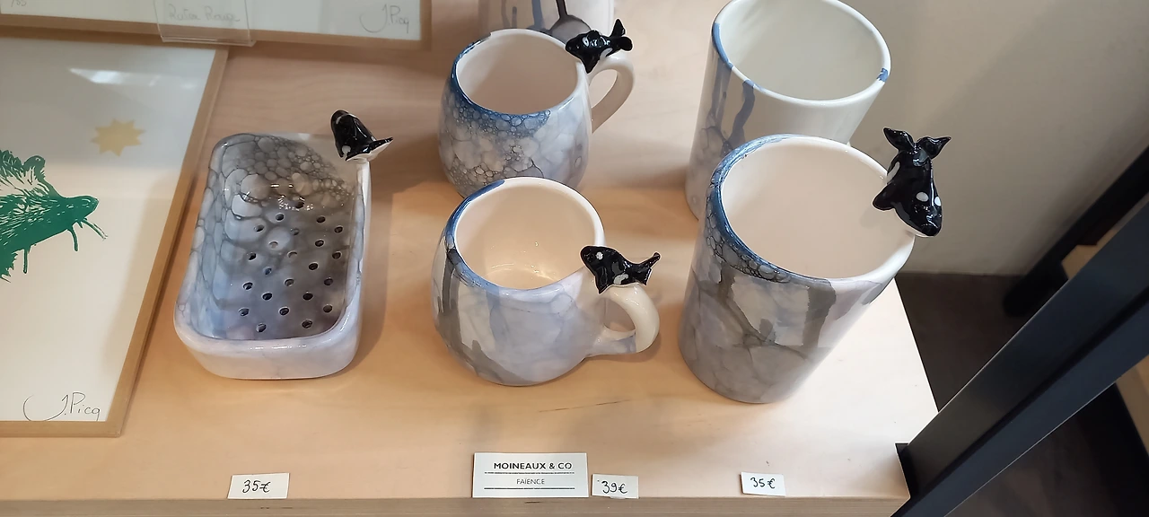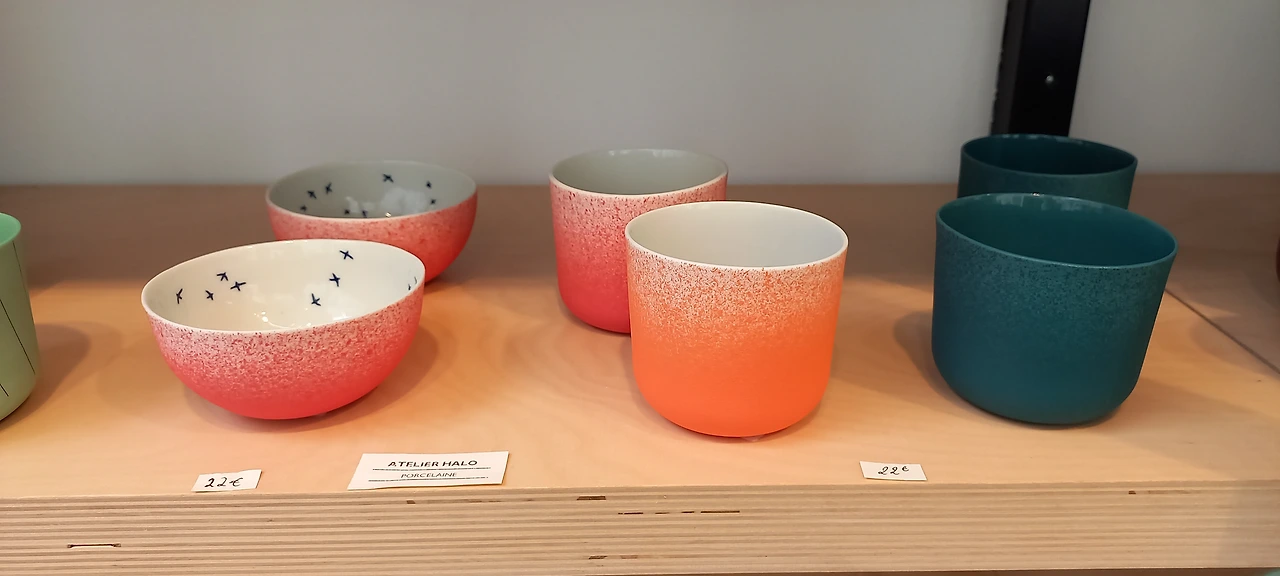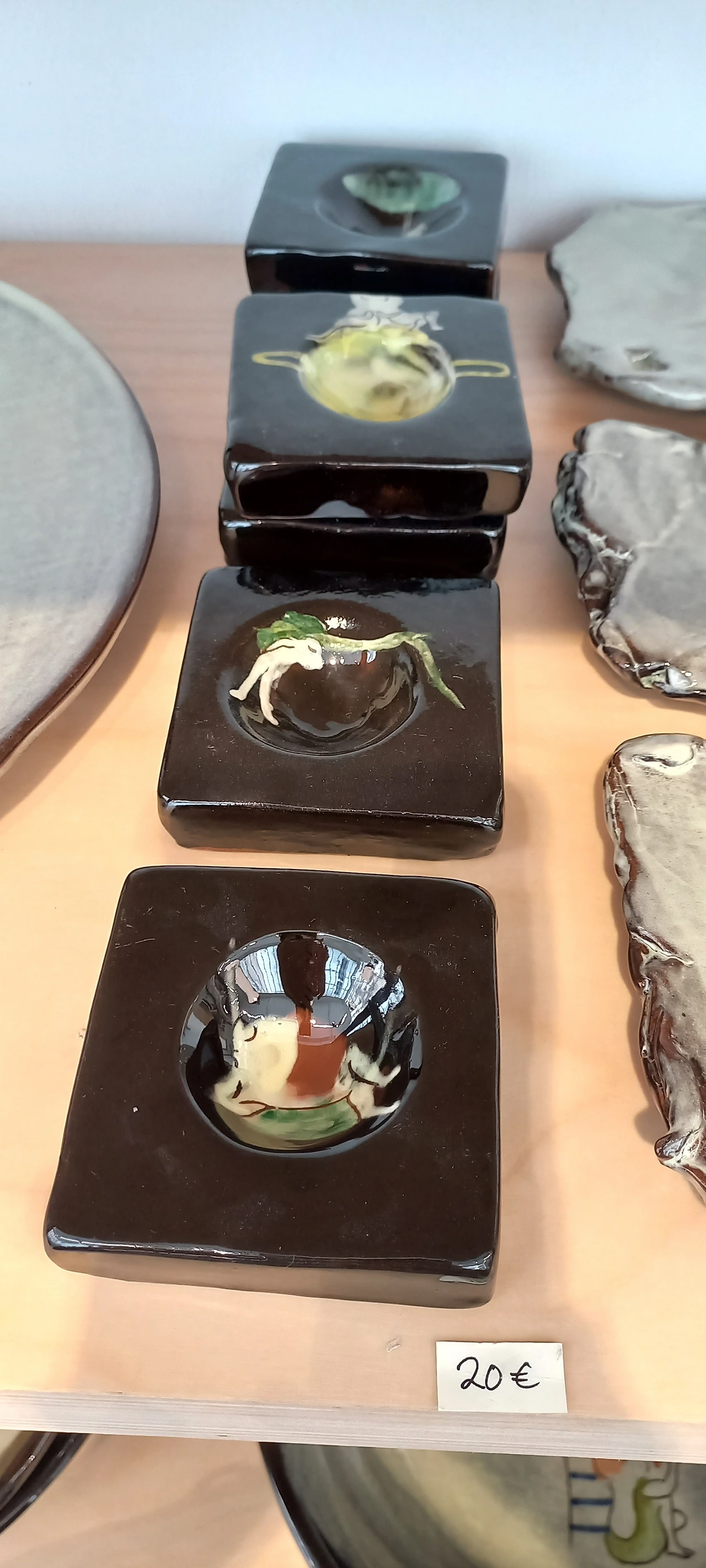 입장해서 왼쪽 공간에는 접시와 컵이 있었다. 아기자기하고 귀엽다. 작가의 이름과 가격표도 붙여있다.