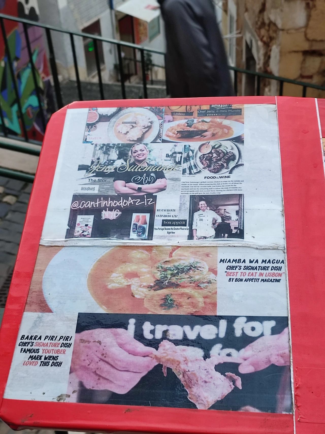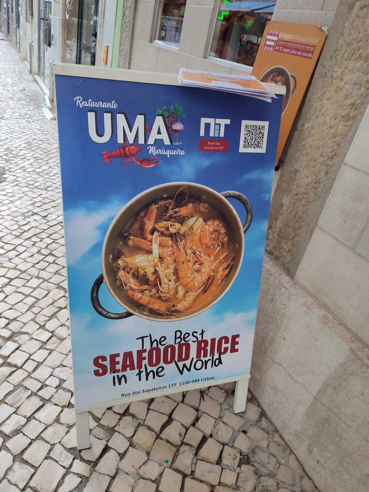 리스본을 걷다보면 저 포스터가 붙은 레스토랑을 보게 될 것이다.