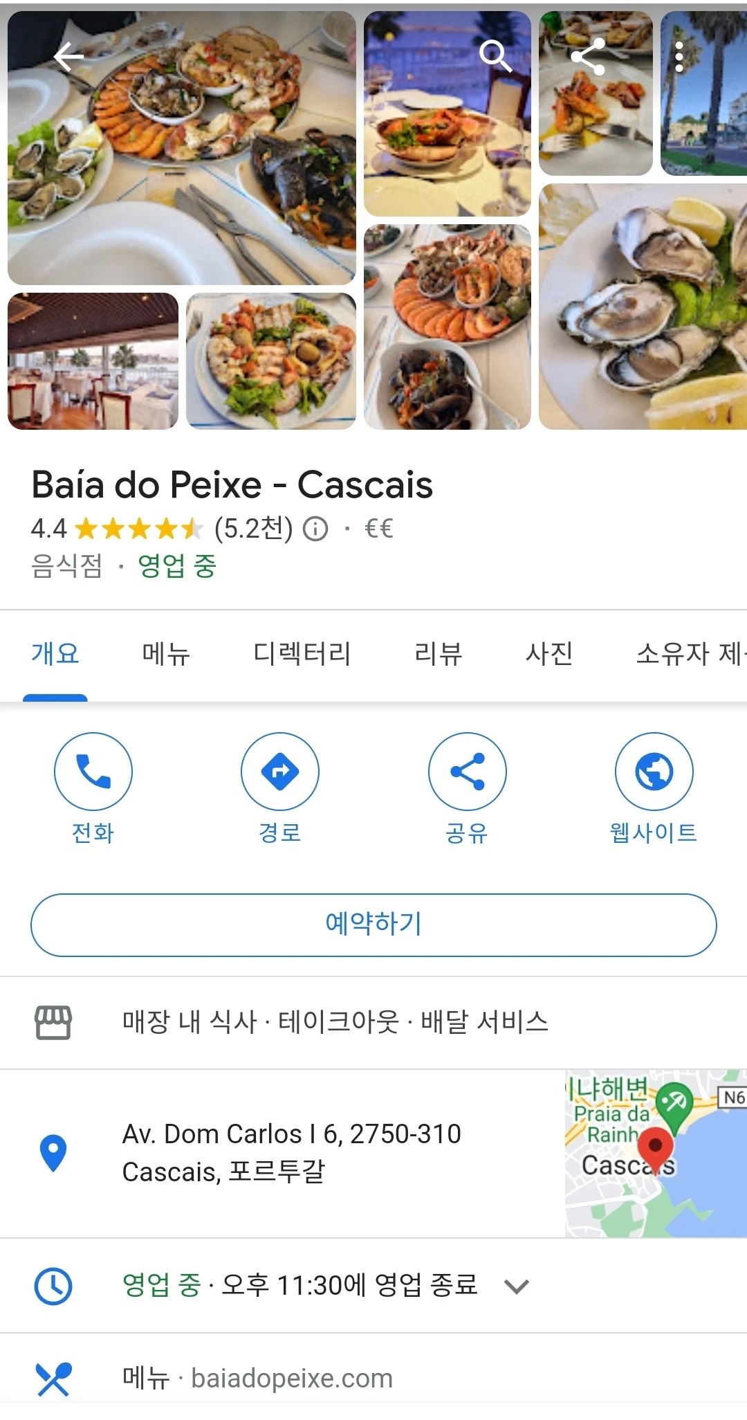 첫끼를 투어의 마지막 코스는 까스까이쓰 Cascais 에서 해물밥으로 해결했다. 사실 가이드가 추천한 레스토랑들이 평일 16시에 다 문이 닫혀있었다. 인터넷으로 검색한 한국인 추천 맛집마저 문이 닫혀 있었다.