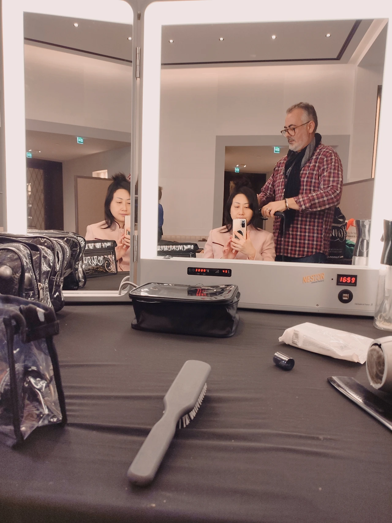 식사 후 바로 스텐바이, 립스틱 다시 발라주고, 묶은 머리를 다시 고데기 말아주고..