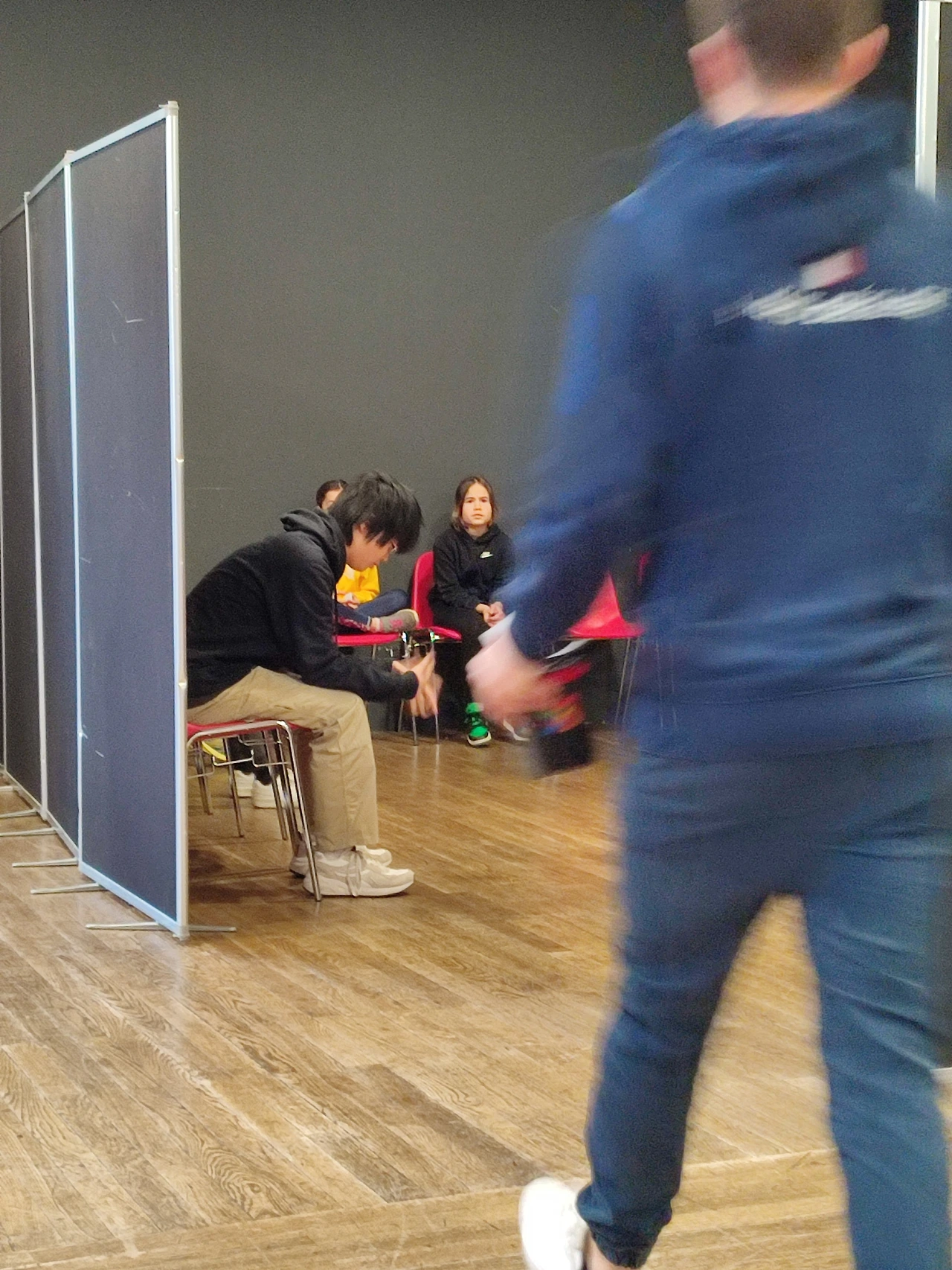 우리는 아들이 참여하는 3×3×3 경기 시간 한 시간 전에 도착했다.