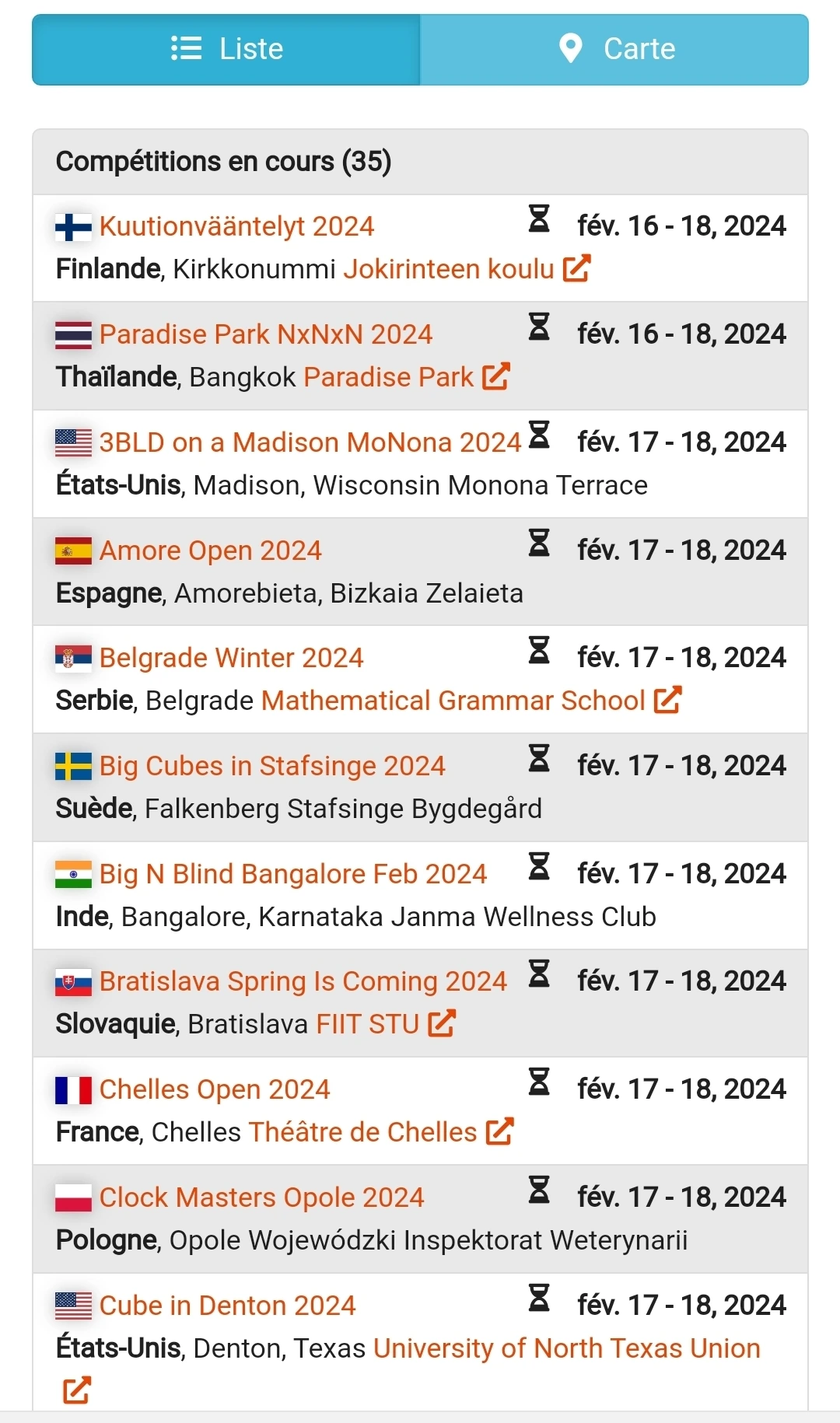 월드 큐브 어소시에이션 대회 사이트에는 이번 주말에 열리는 대회가 소개되어 있었다.
