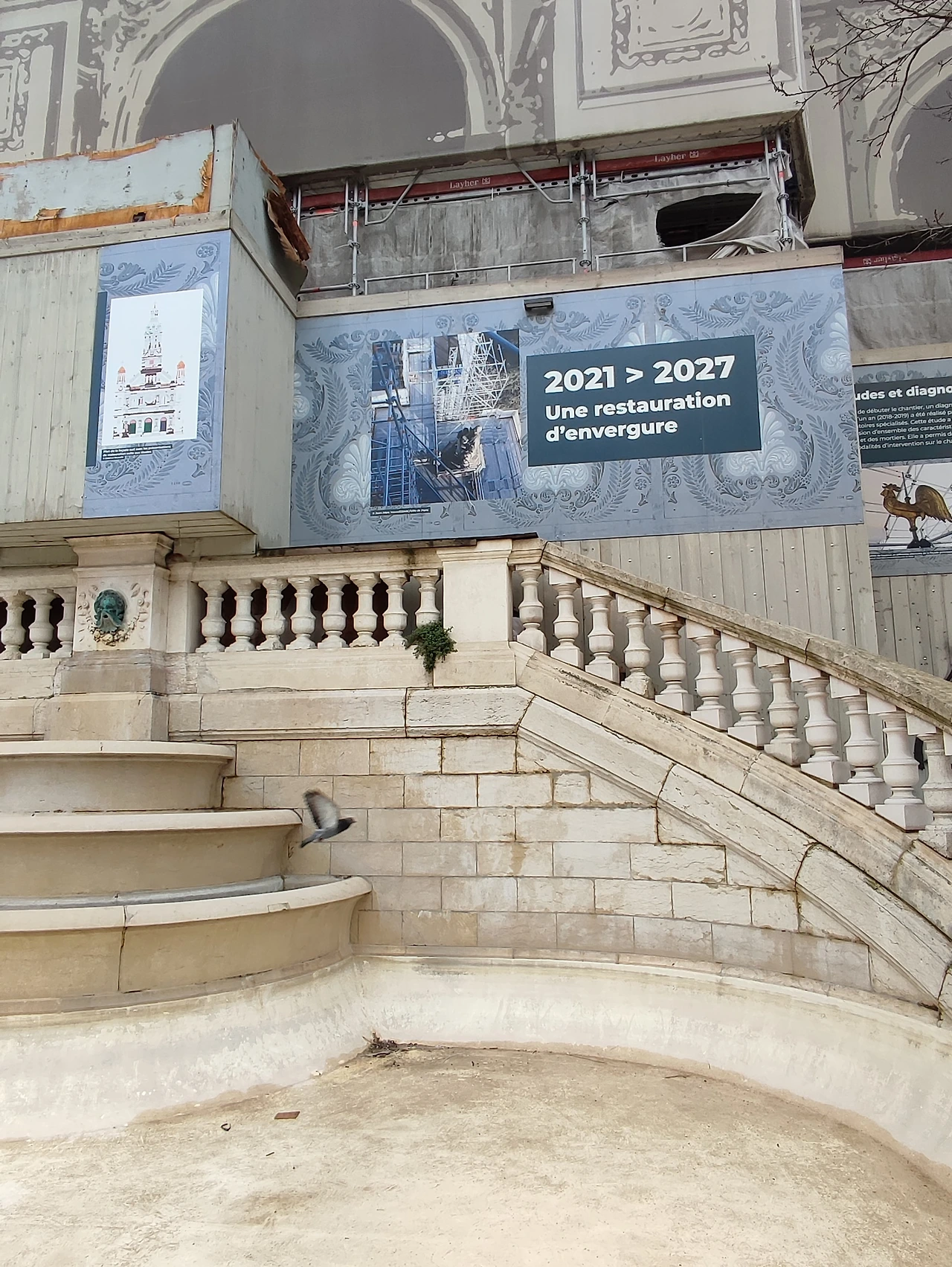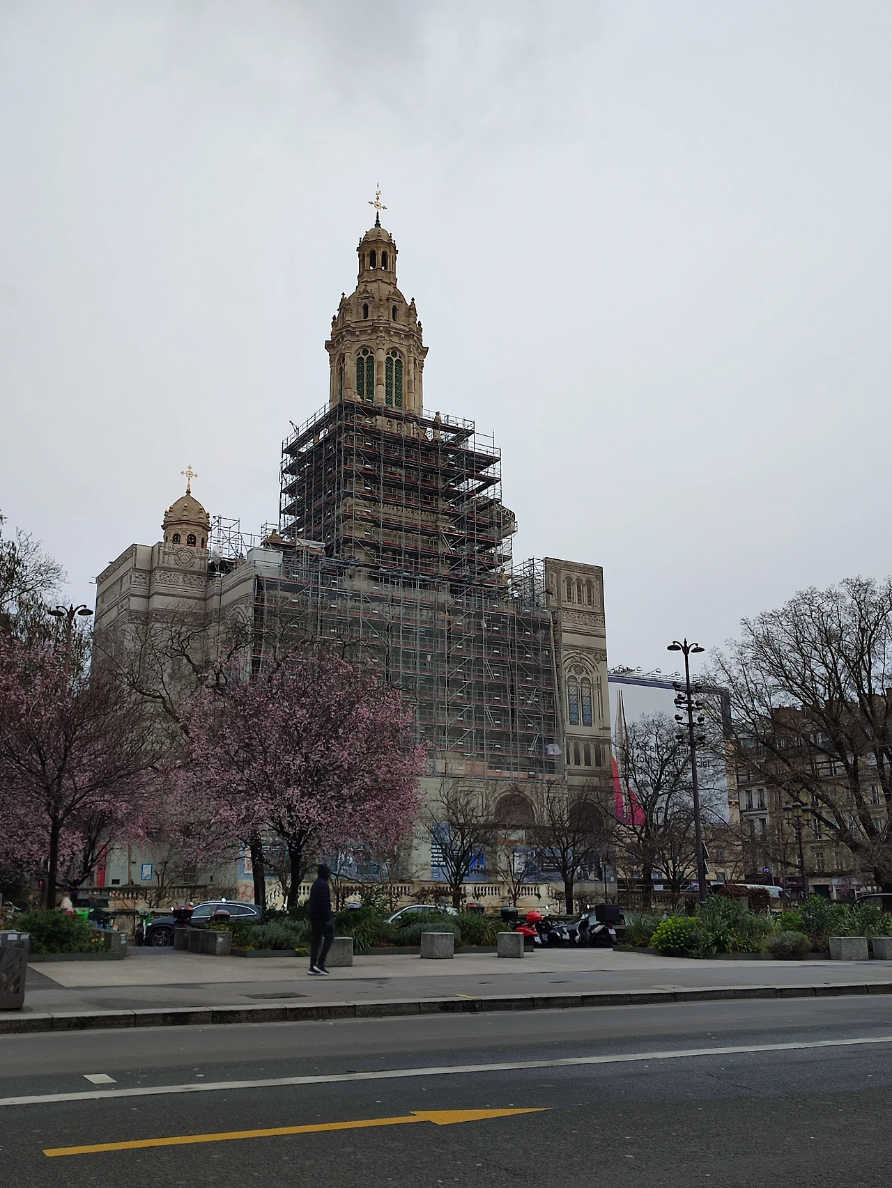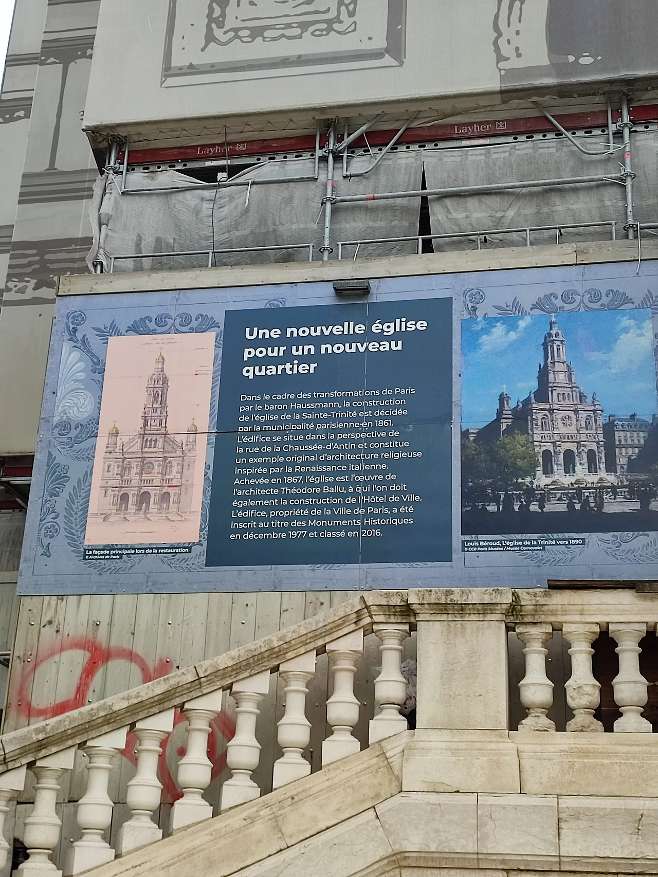 갤러리 라파예트 오스만 입구에서 왼쪽 골목으로 들어서면 라이온킹 뮤지컬 전용 극장을 지나게 된다. 큰길 방향으로 더 걸으면 복원 중인 교회가 나온다. 잠깐 구경하고 사진 찍고 미술관으로 향했다.