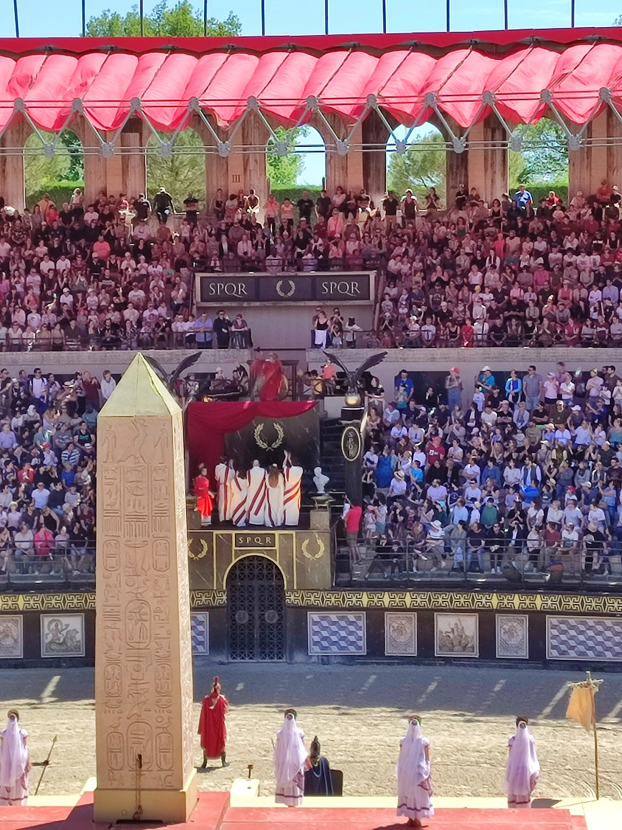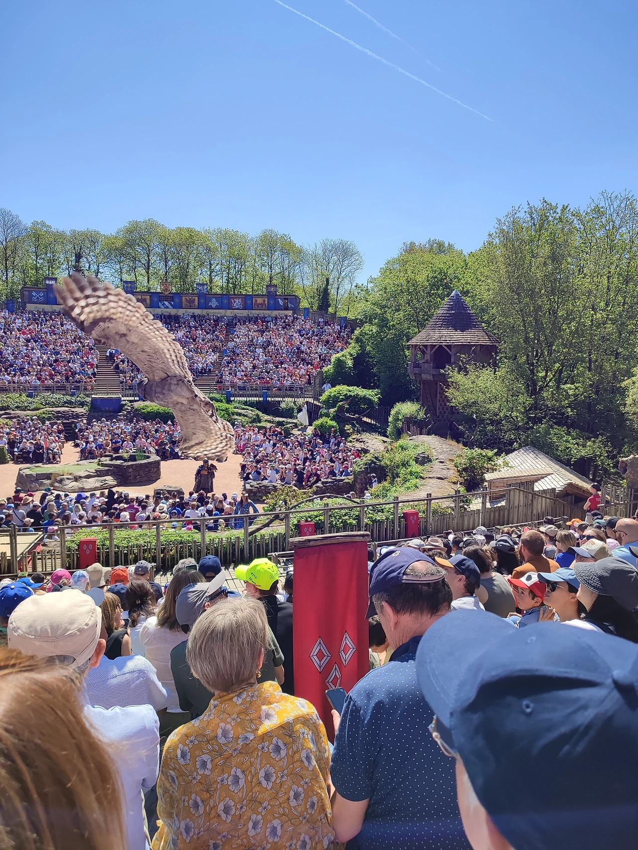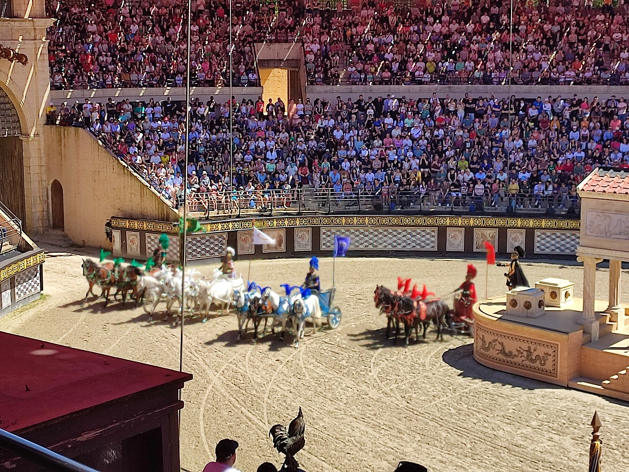 한 시간 길을 서서 입장을 하니 상대편(로마 편)과 우리 편(골족= 프랑스)이 응원전을 펼쳤다. 딸아이는 극도로 흥분하며 미친 듯 고함을 쳤다.